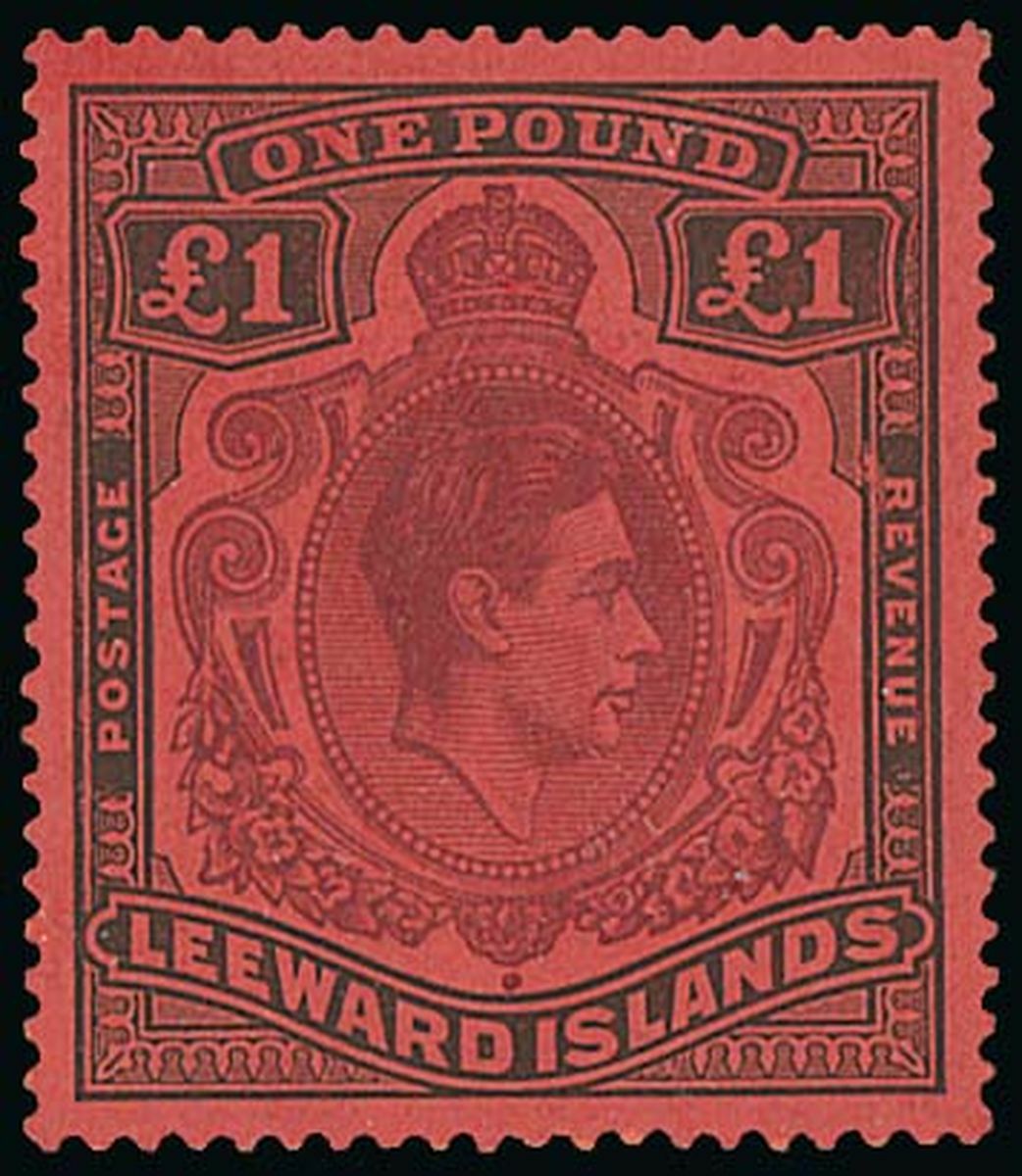 £1 purple and black on carmine showing gash in chin, fine unmounted mint. S.G. 114af, £2,000. Photo