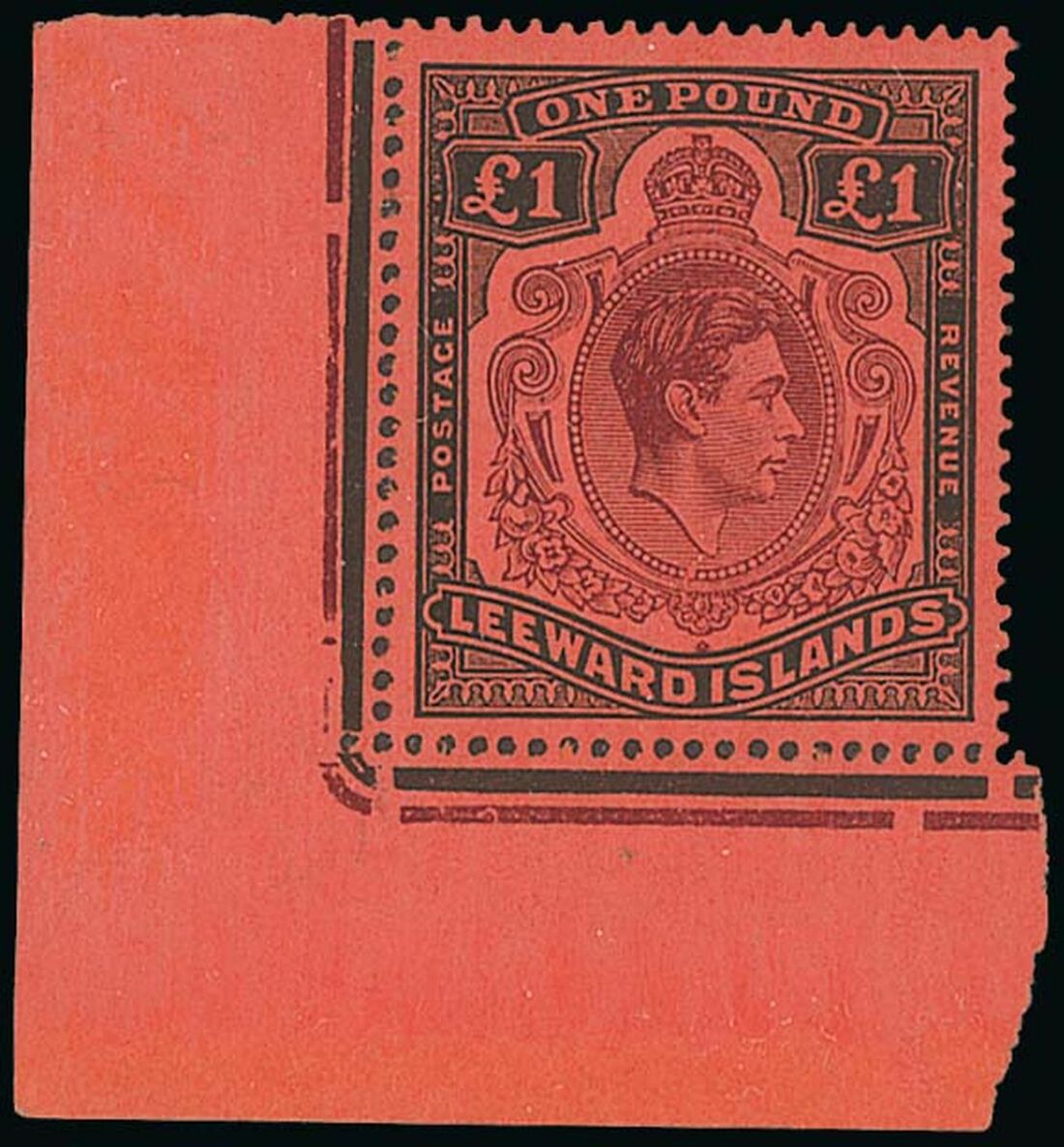 £1 brown-purple and black on salmon, a lower left corner example showing missing pearl, fine unmounted mint. S.G. 114ba, £1,700. Photo