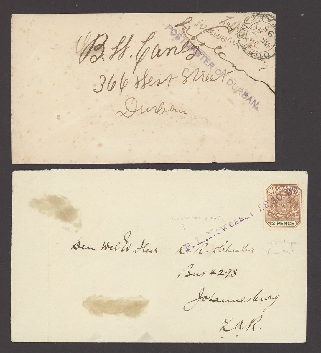 1895 (21 Mar.) 'Coleman Provisonal' unsealed envelope sent locally with at upper right corner manuscript 'half penny/ received in money' with the postmaster's signature and a
