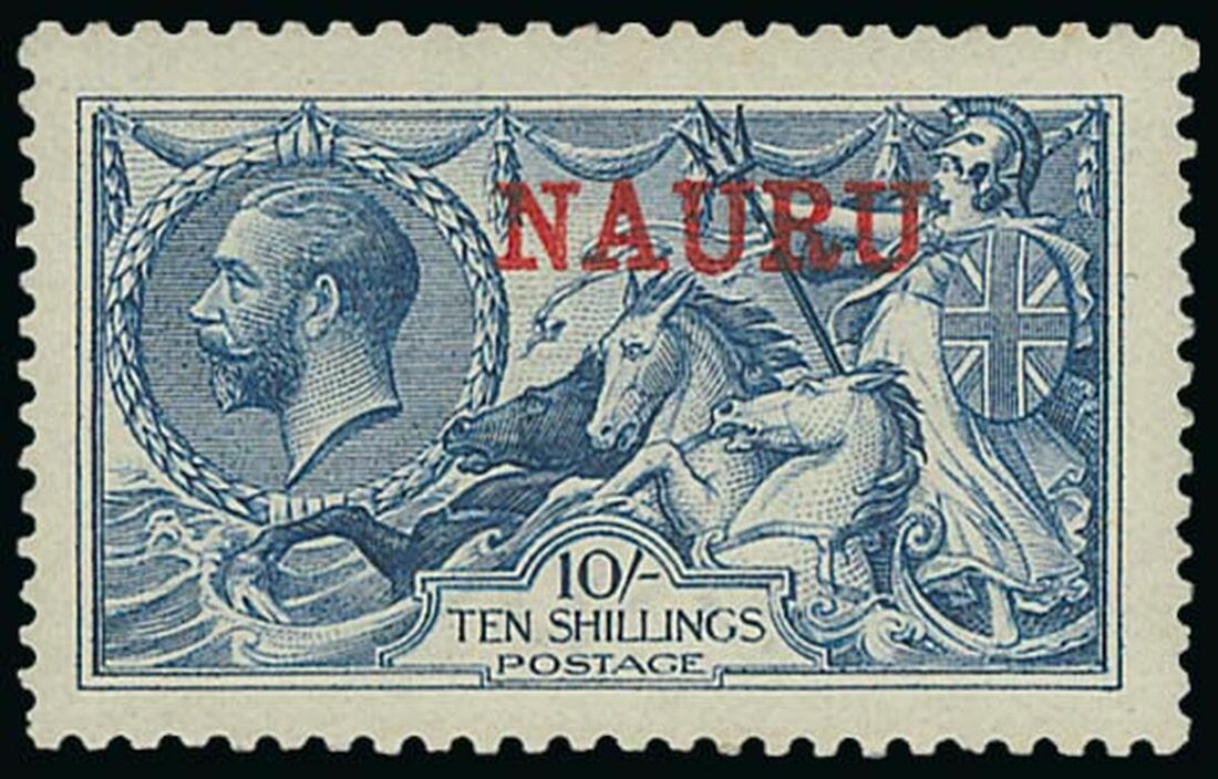 1916-23 De La Rue 10/- deep bright blue, superb centring, fresh unmounted mint. S.G. 23d, £500. Photo