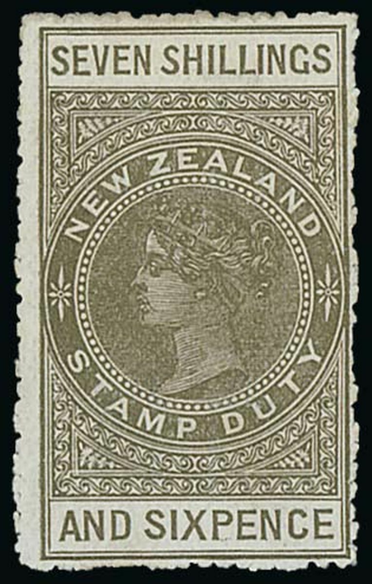 1906 perf 14 7/6d. bronze-grey on unsurfaced Cowan paper, centred to lower right, fine mint. Rare. S.G. F84, £1,500. Photo