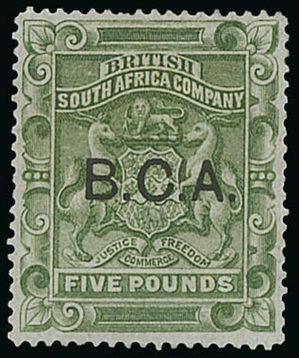 £5 sage-green, large part original gum; fine. S.G. 16, £2,250. Photo