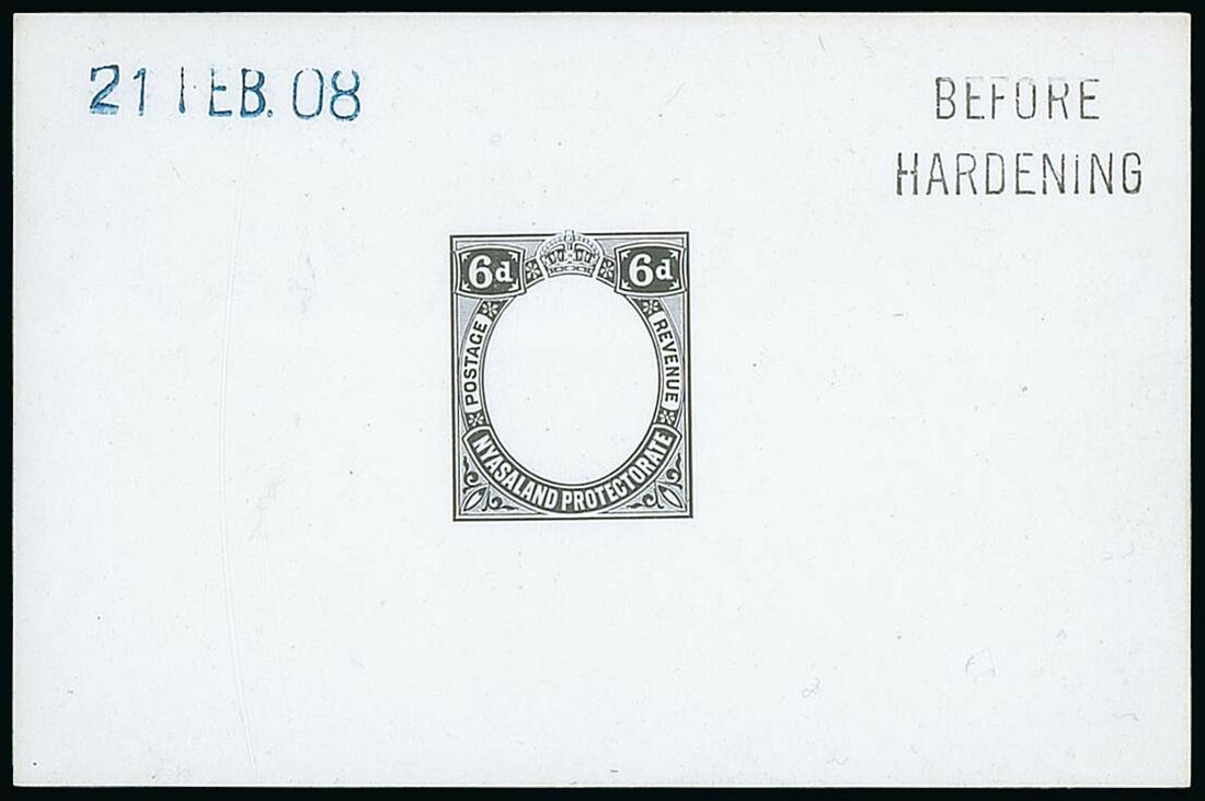 6d. with blank vignette in black on glazed card (92x60mm.) marked