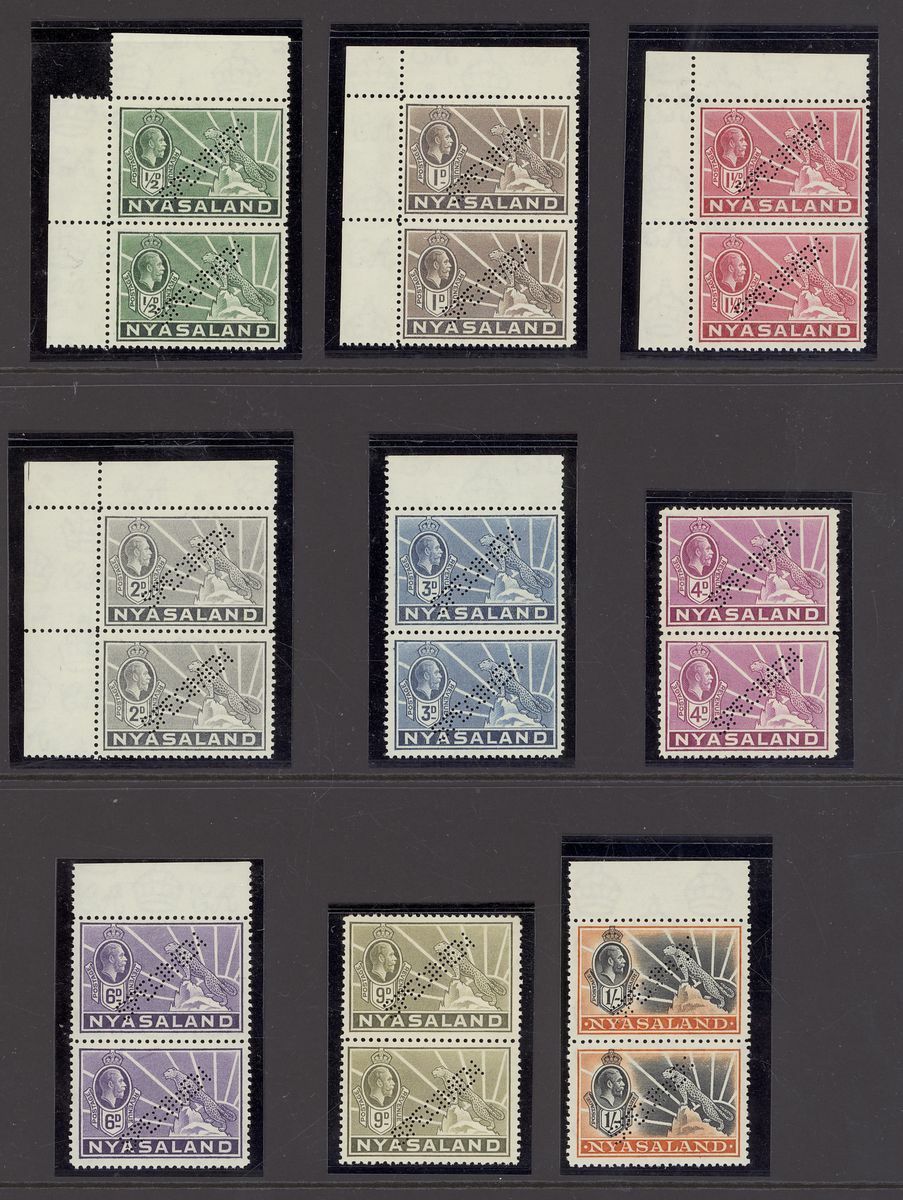 1934-35 ½d. to 1/- set of nine in vertical pairs, each perforated
