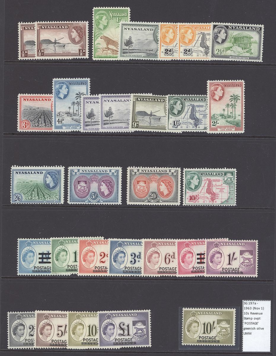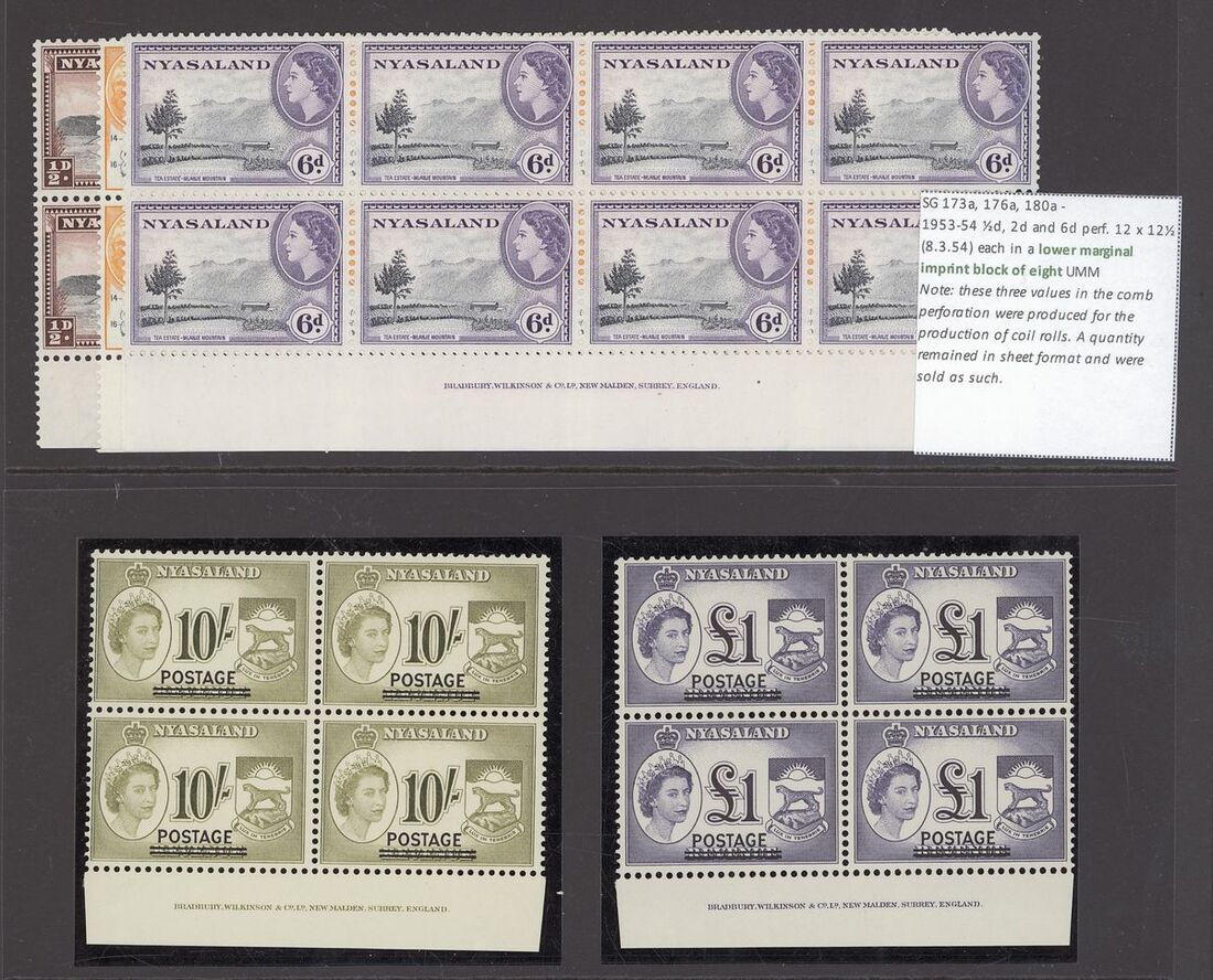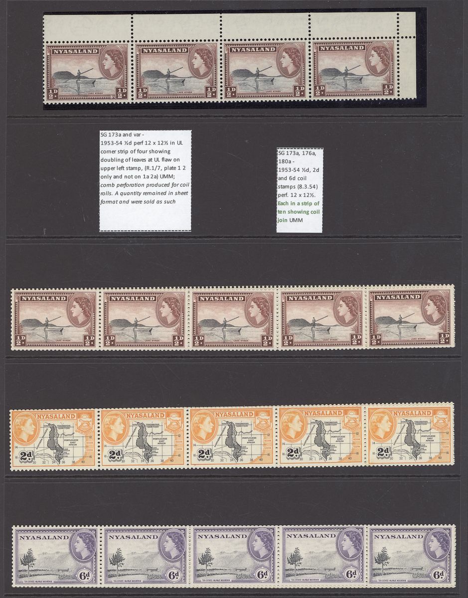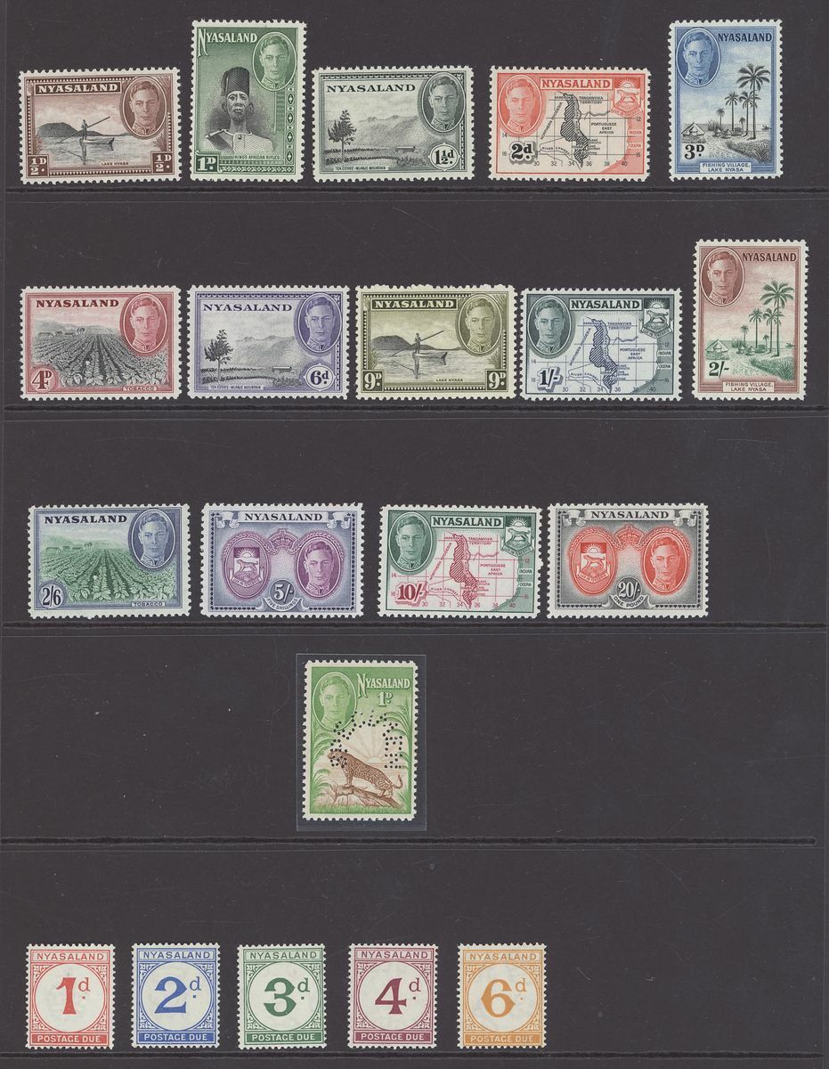 1945 ½d. to 20/- set of fourteen plus ½d. top right corner strip of four showing , one showing doubling of leaves at upper left, 1947 (Oct.) 1d. perforated