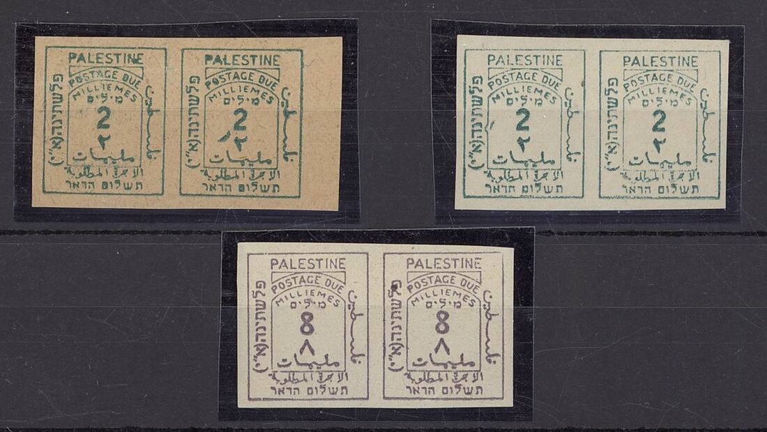 1923 imperforate plate proof in horizontal pairs selection (3) including 2m. yellow paper no gum as printed, 2m. and 8m. on white paper both unmounted mint, the 2m. on yellow paper with diagonal crease at top otherwise fine. Ba PD2-PD4, $800.