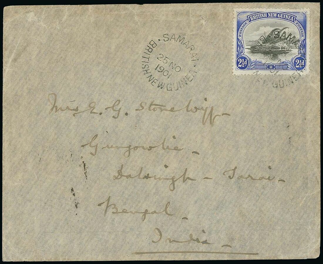 1901 (25 Nov.) envelope (bishop's mitre on flap) to India, bearing BNG 2½d. tied by