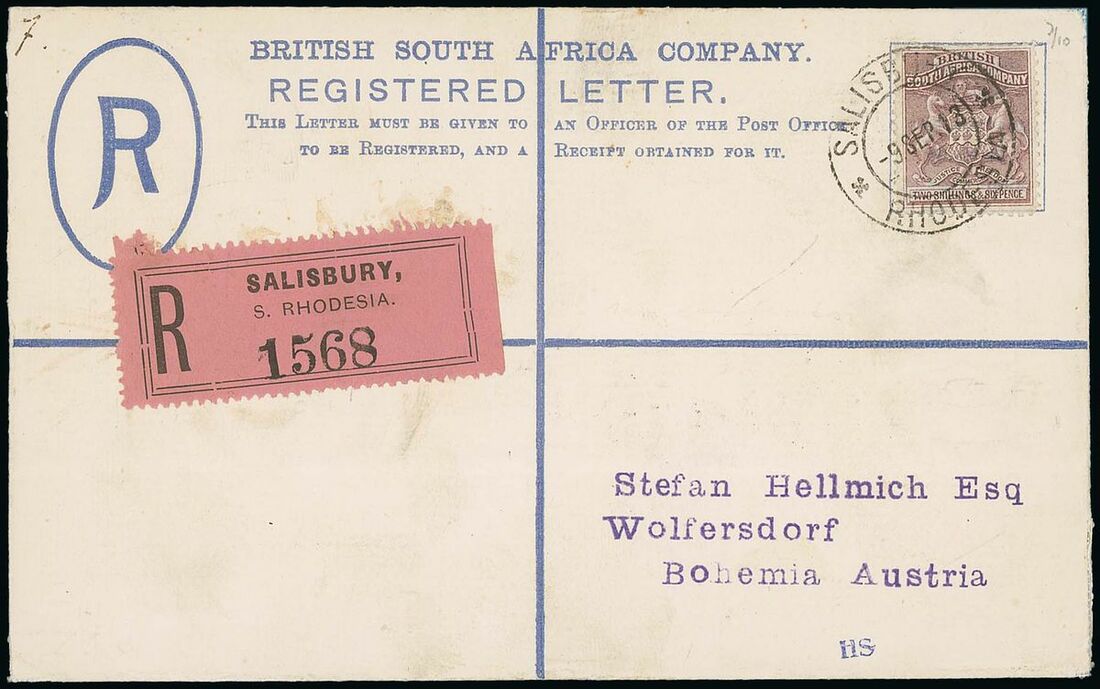1913 (9 Sept.) Hellmich envelope registered to Austria bearing 2/6d. grey-purple tied by