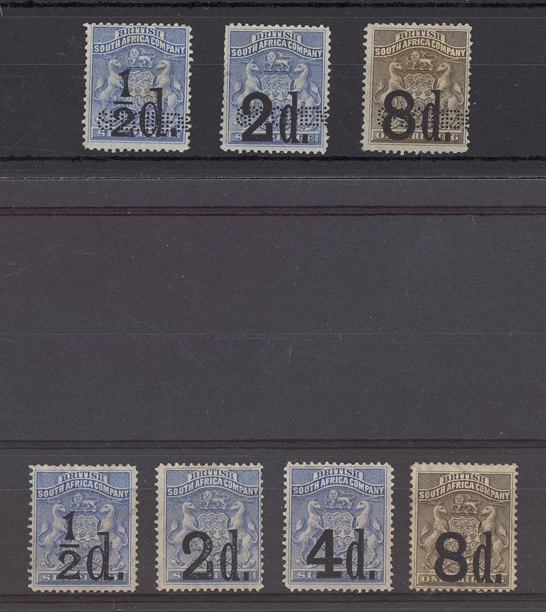½d. on 6d., 2d. on 6d., 4d. on 6d. and 8d. on 1/- set of four, unused with part original gum (toned) and ½d. on 6d., 2d. on 6d. and 8d. on 1/- part set all perforated