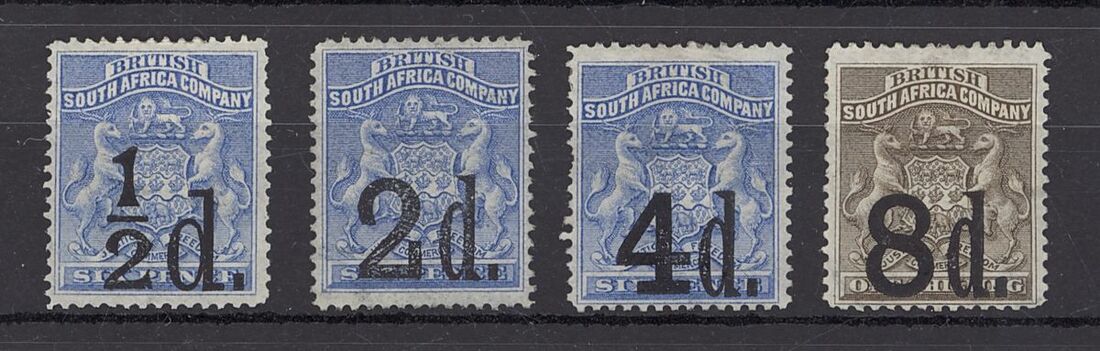 ½d. on 6d., 2d. on 6d., 4d. on 6d. and 8d. on 1/- set of four, part original gum, fine. S.G. 14-17, £700