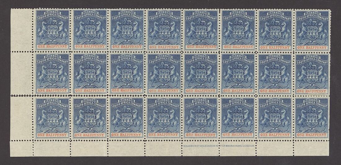 A group of mint multiples comprising 1892-93 1d. block of eighteen, 1892-24 ½d. blocks of twenty-four and thirty, 3d. blocks of twelve and sixteen and 4/- block of four; fine mint. S.G. 1, 18, 21, 26, £1,600+