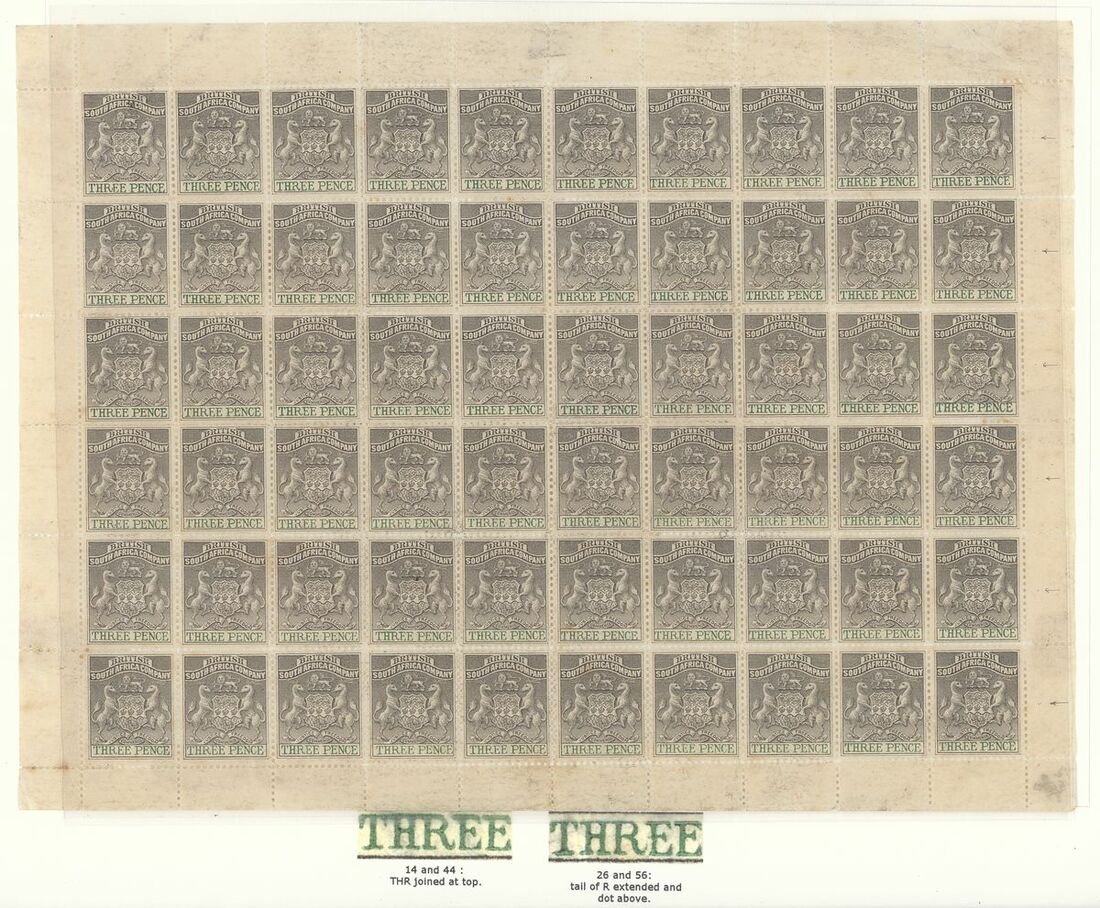 3d. grey-black and green, a complete sheet of sixty showing 'Pure Linen' watermark and showing several printing flaws to the