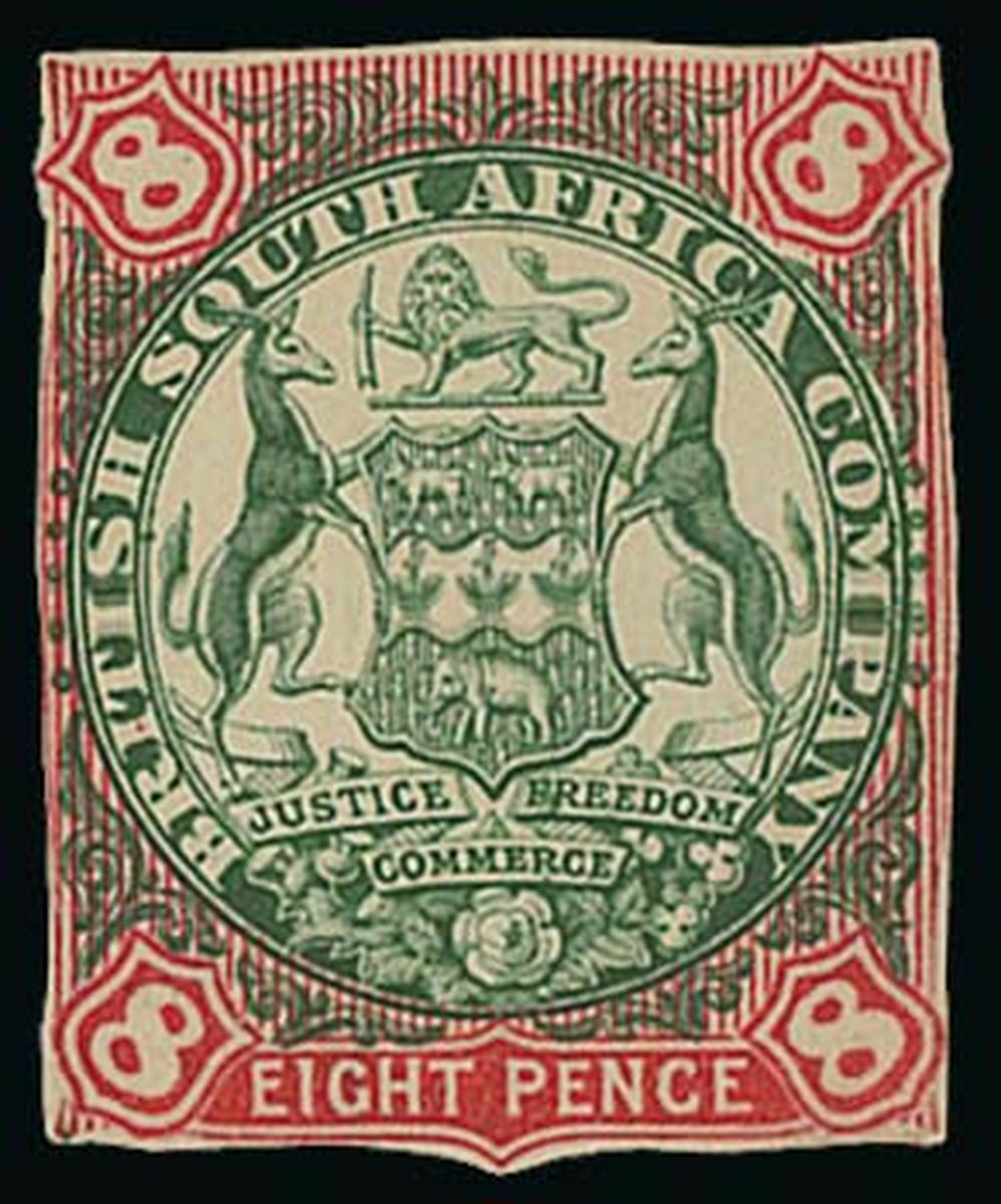 8d. in red and green on wove paper without gum, cut to shape; fine. Photo