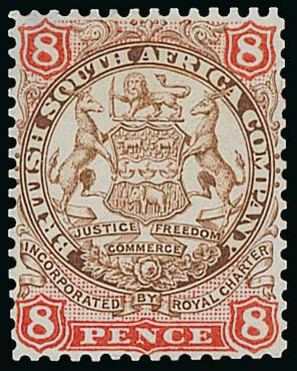 8d. colour trial of the unadopted die in orange and brown, on gummed paper; fine. Photo
