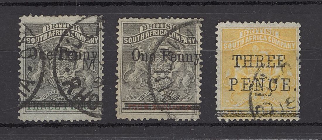 1d. on 3d., 1d. on 4/- and 3d. on 5/-, each used with part c.d.s., a few pulled perfs in places otherwise fine. S.G. 51-53, £1,525