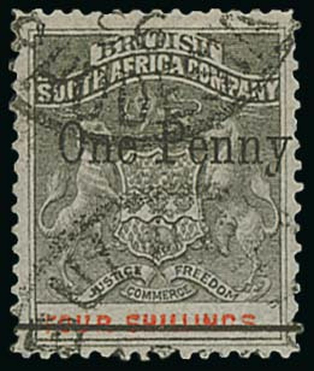 1d. on 4/-, variety single line through original value, used with part clear