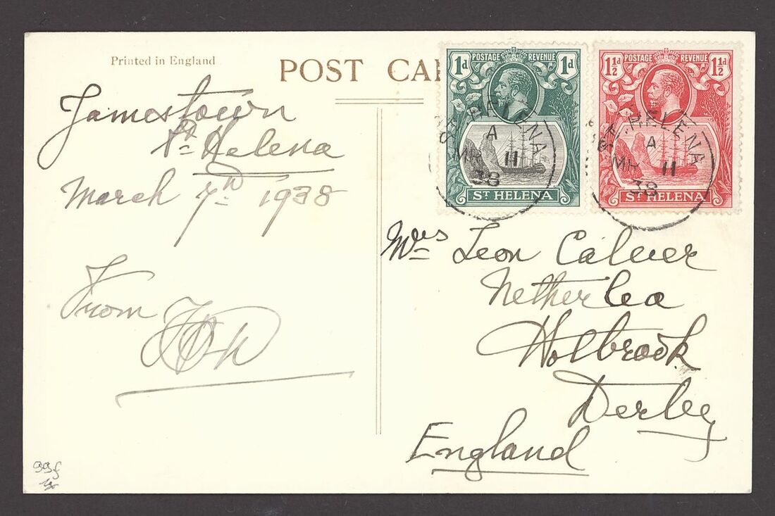 1938 (11 Mar.) photographic picture postcard (Napoleon's tomb) to England, bearing 1922-27 1d. grey and green and 1½d. deep carmine-red, both tied by St. Helena c.d.s.,  fine