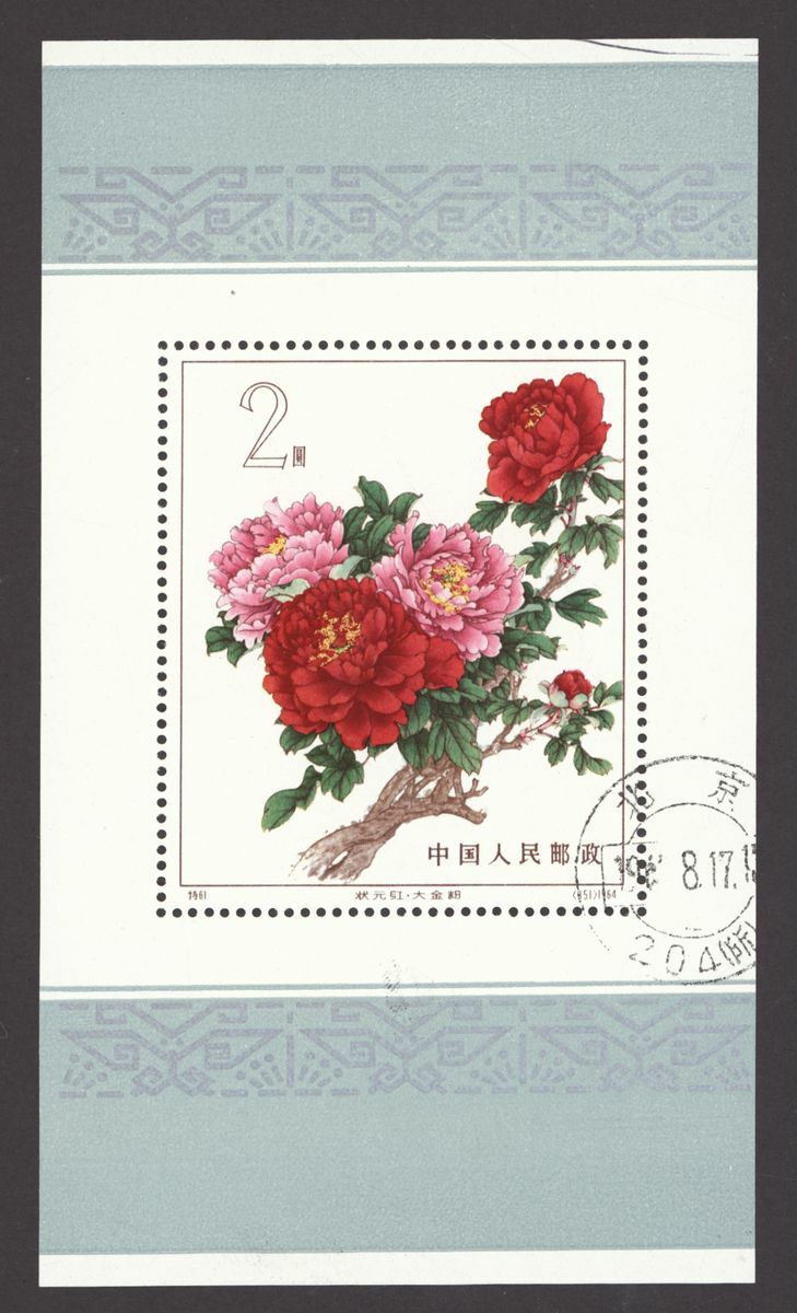 1964 (5 Aug.) 2f. Peonies souvenir sheet, used. Ink mark at top right, otherwise fine. Yang S61M.