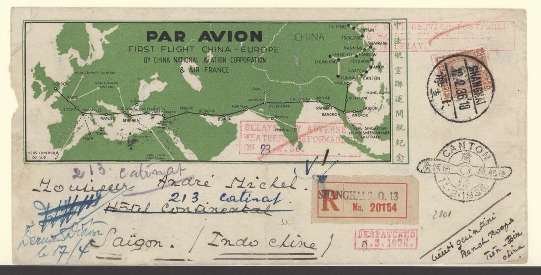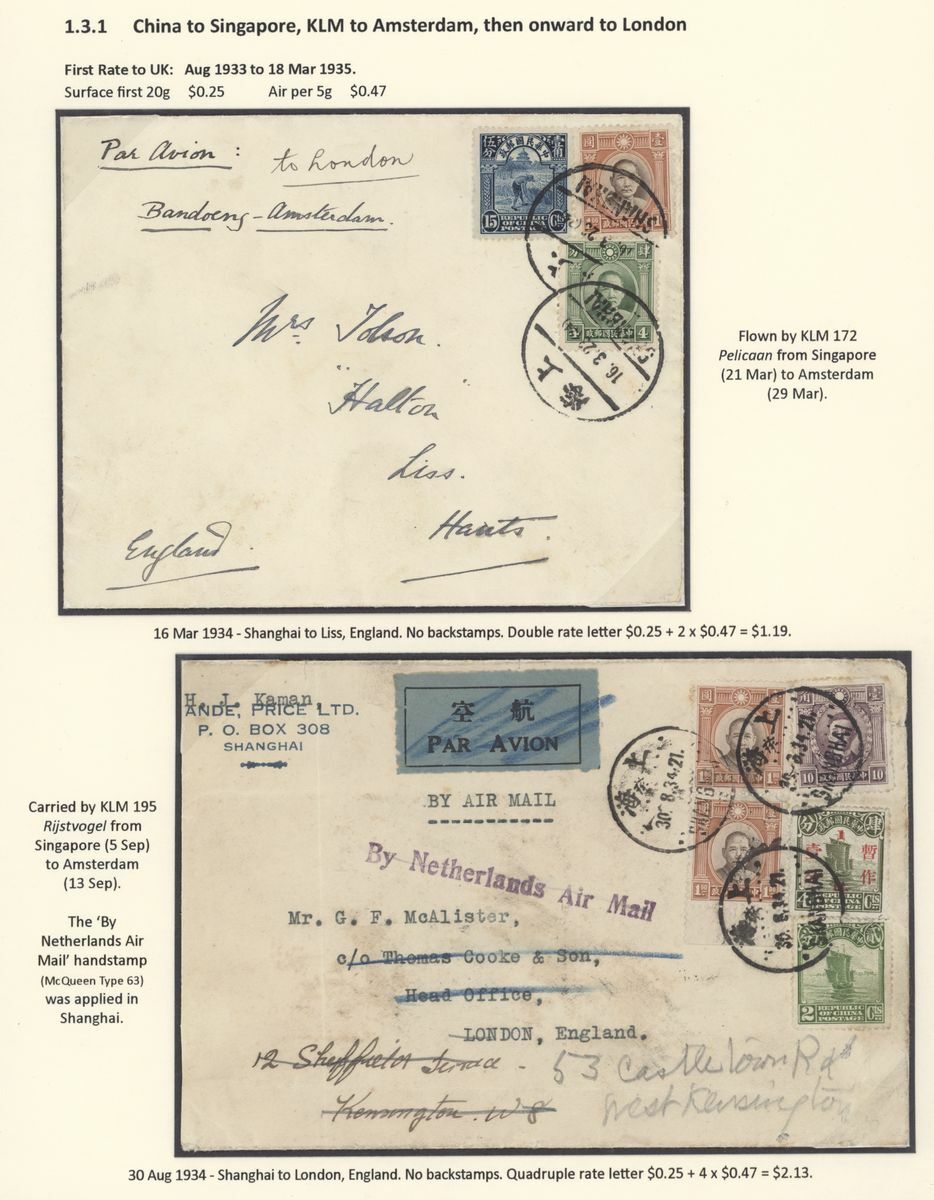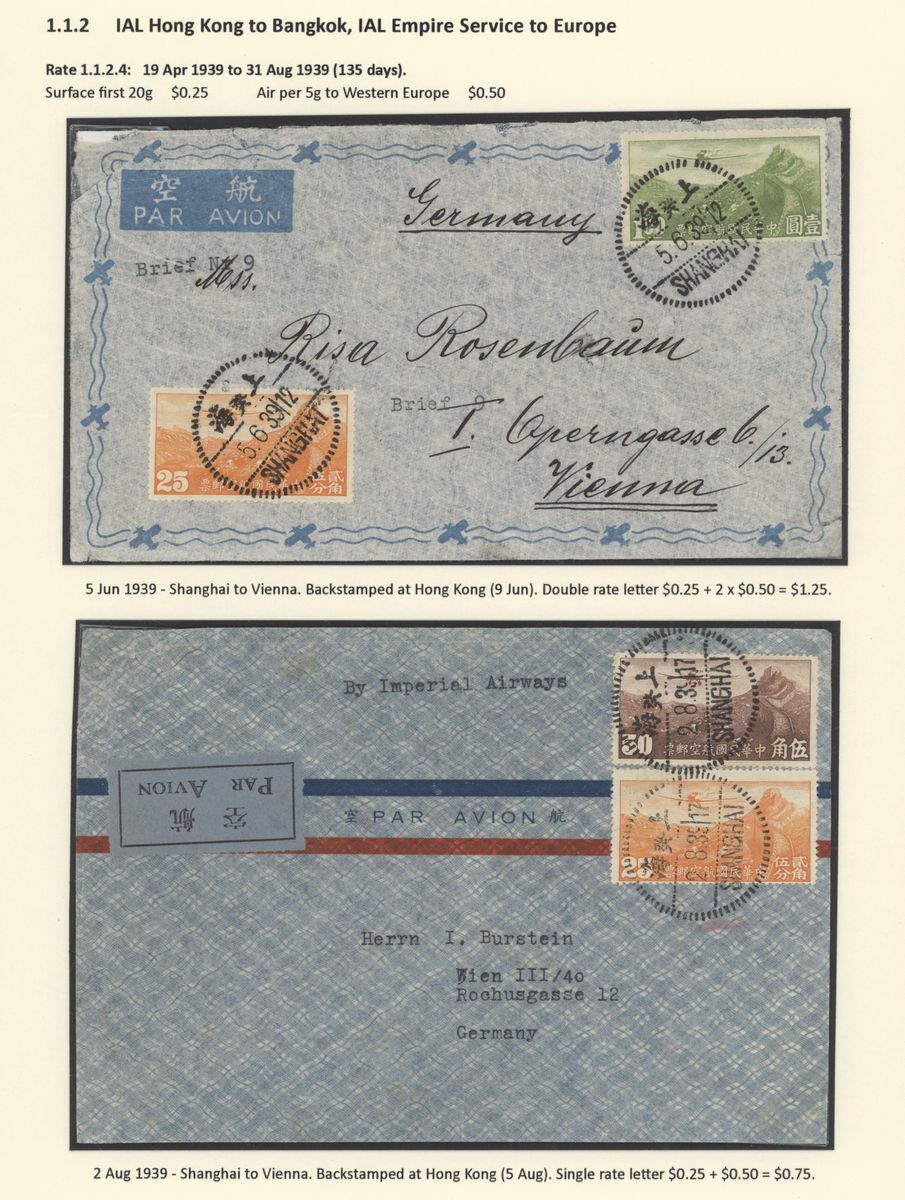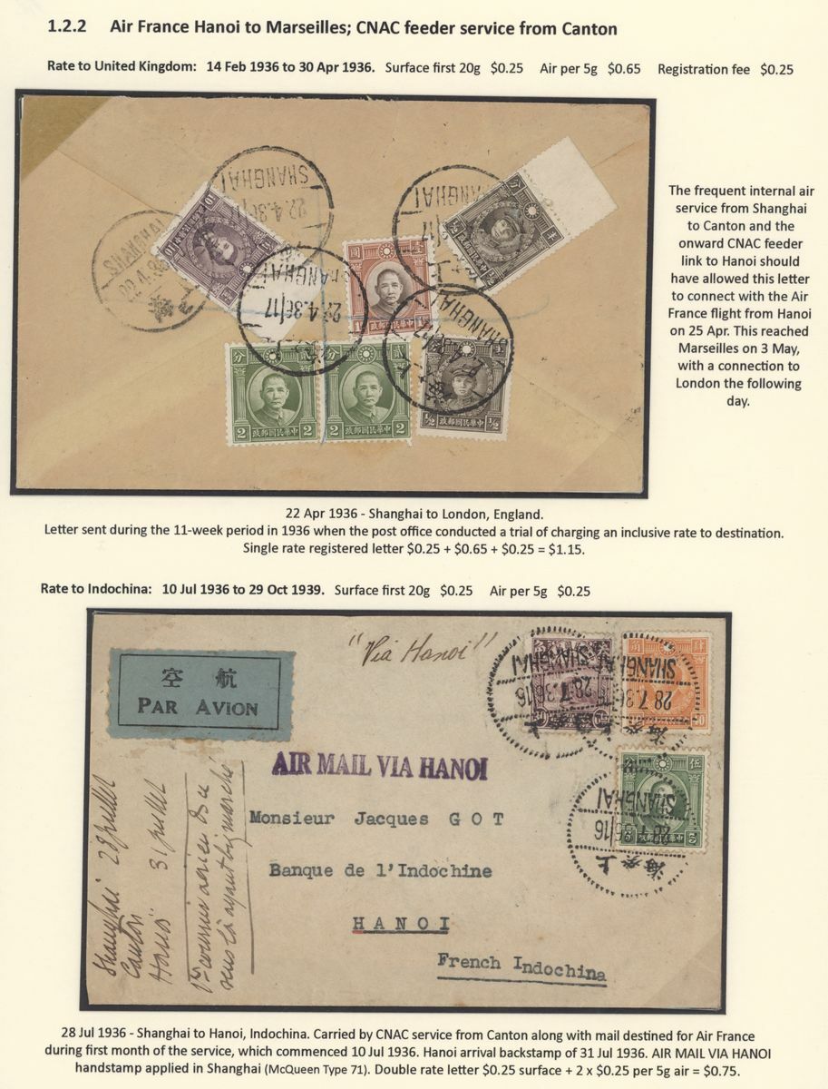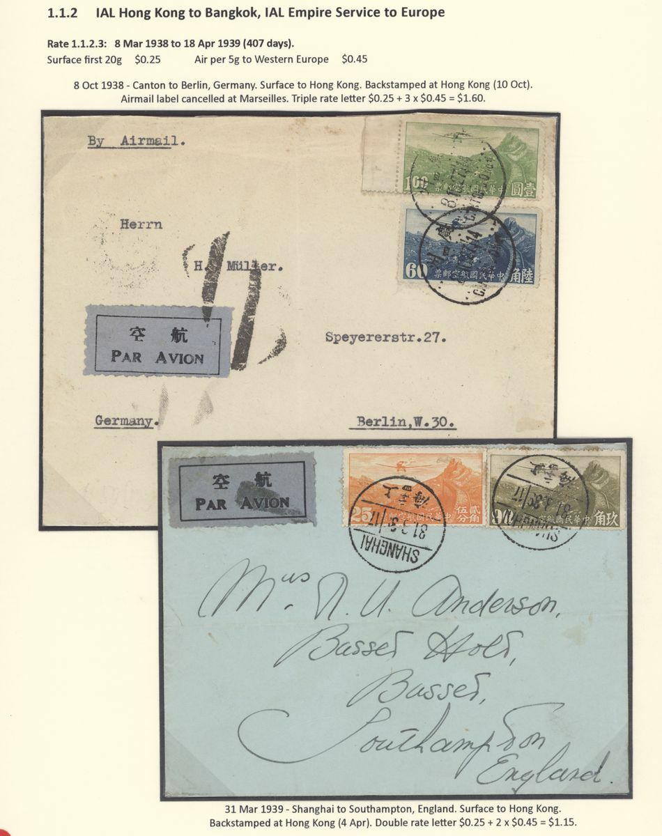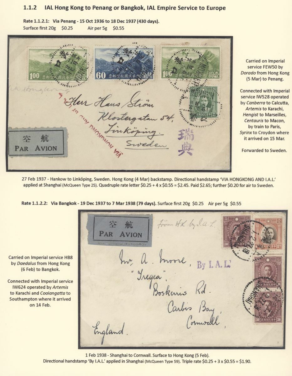 A collection of China International Air Mails, Pre-World War Two, Uniform rates with a range of different frankings, rates and destinations (18) including British Imperial Airways via Penang or Bangkok and with destinations including Sweden, England, France, Germany, Austria, French Indo-China, etc., a nice group
