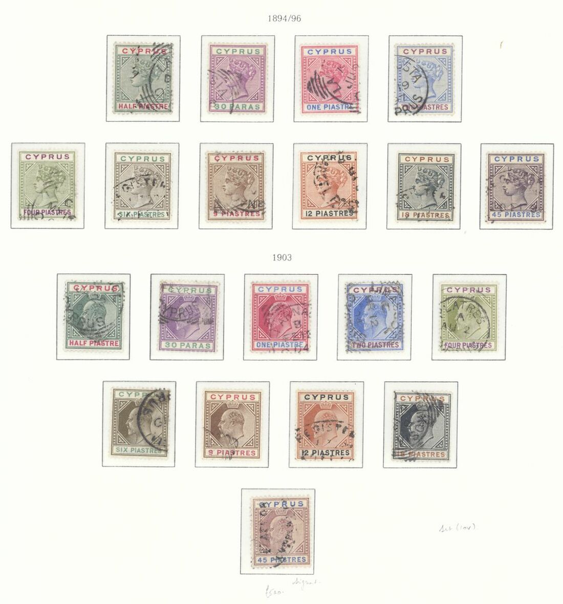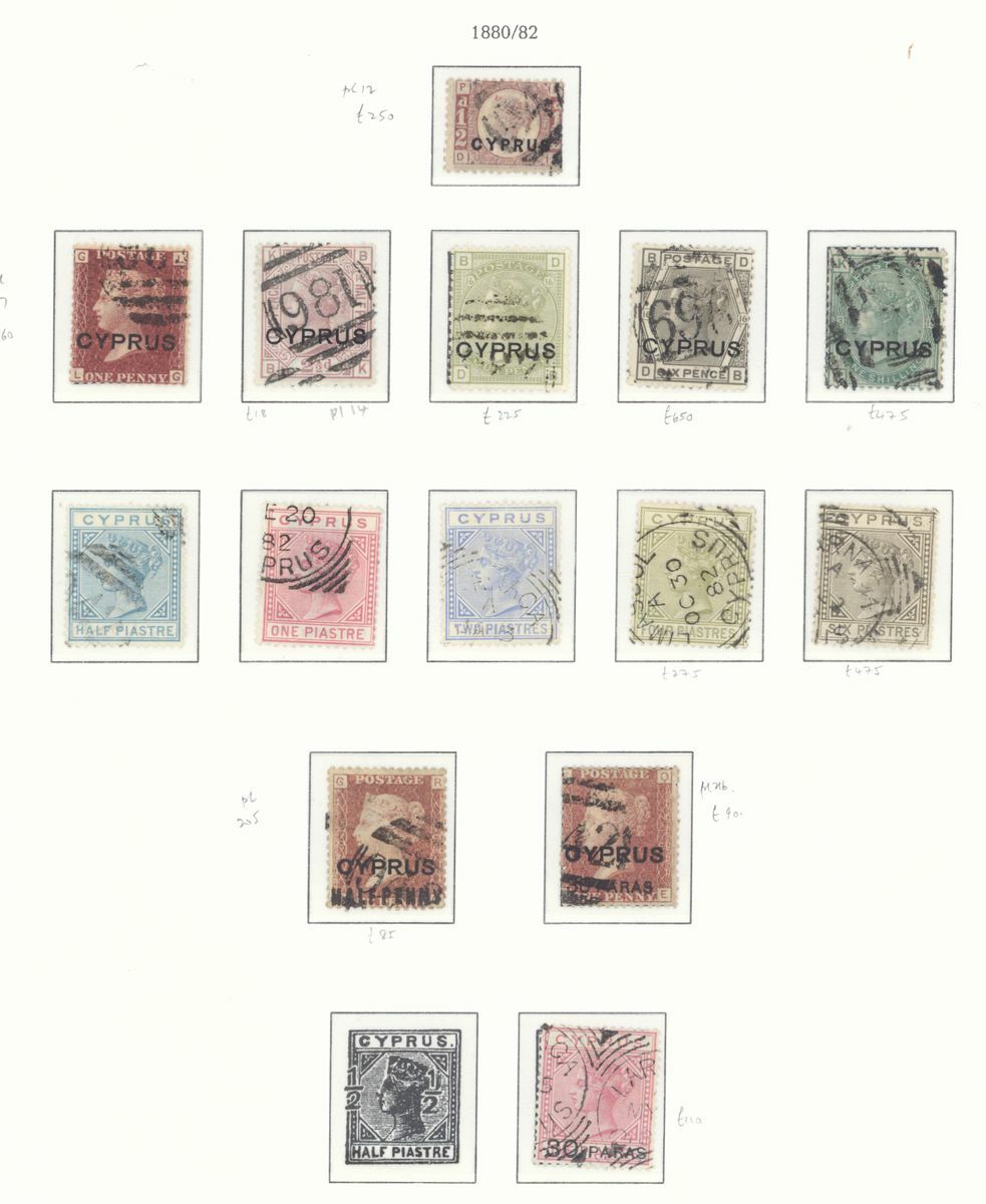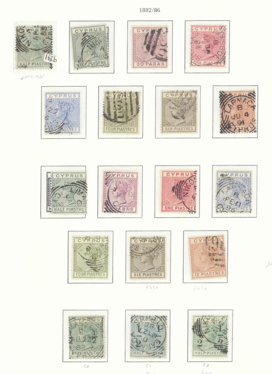 1880-1938 used collection arranged on album pages including 1880 ½d. (Pl.12), 4d. to 1/-, 1881 to 6pi., 1882-86 to 12pi., 1892-94 to 12pi., 1894-96 to 45pi., 1902-04 to 45pi., 1904-10 to 45pi. Generally good to fine, some dubious cancels valued on its merit, high catalogue value, direct inspection advised.