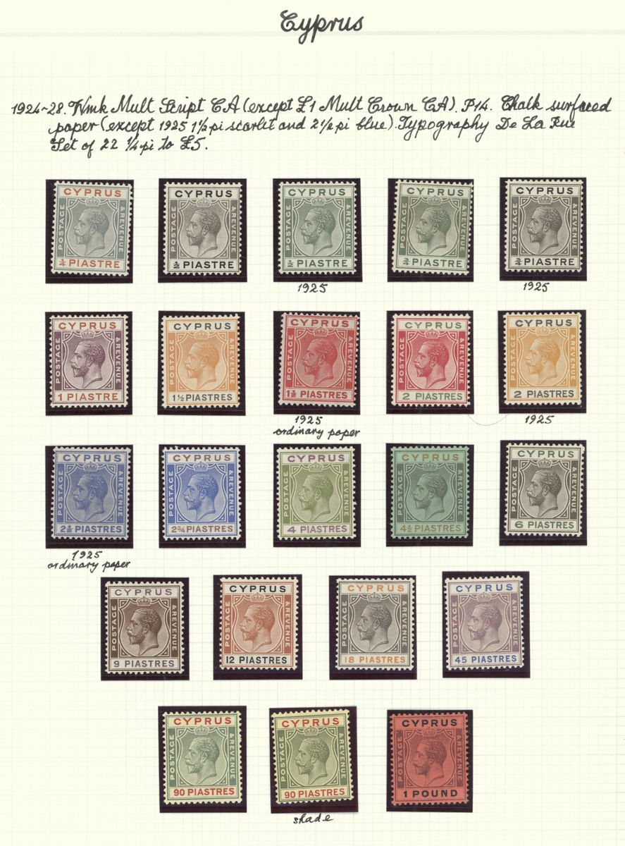 1912-34 mint group comprising 1912-15 MCA set to 45pi., 1921-23 Script set to 45pi., 1923 MCA 10/- and £1, 1924-32 Script set to £1 (with two 90pi. values), 1928 set to £1 and 1934 set to 45pi.; generally fine mint. S.G. cat. value in excess of £3,600