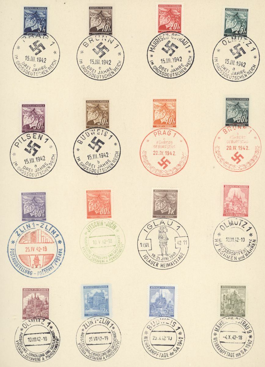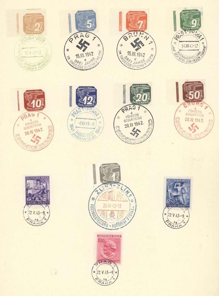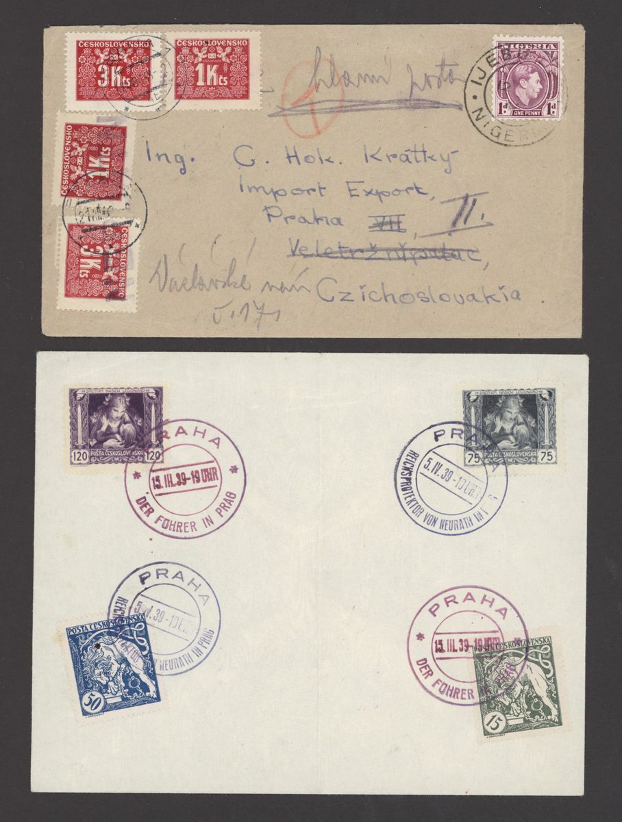 1941-43, folder containing thirty-eight Czechoslovakia or Bohemia and Moravia issues with a variety of special cancellations (some coloured), also nine pieces or cards with similar cancellations and 1948 cover from Nigeria, taxed on arrival. Chiefly good to fine
