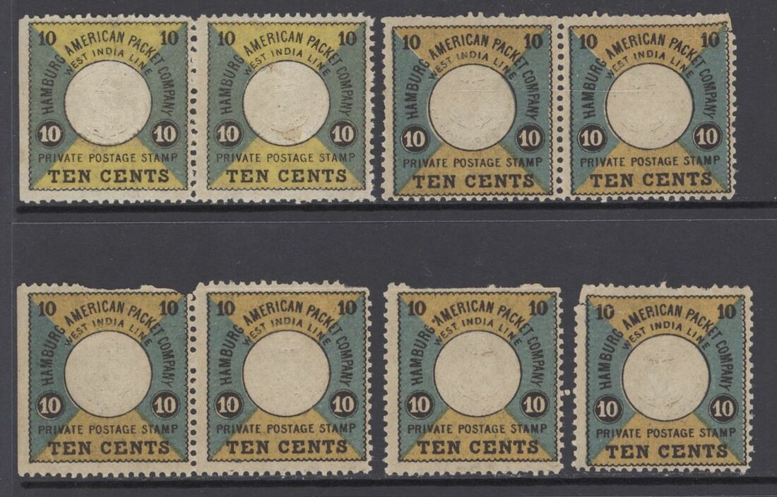 1875-79 HAPAG 10c., horizontal pair with straight edge at left, original gum, fine. Also two singles and two pairs with faults