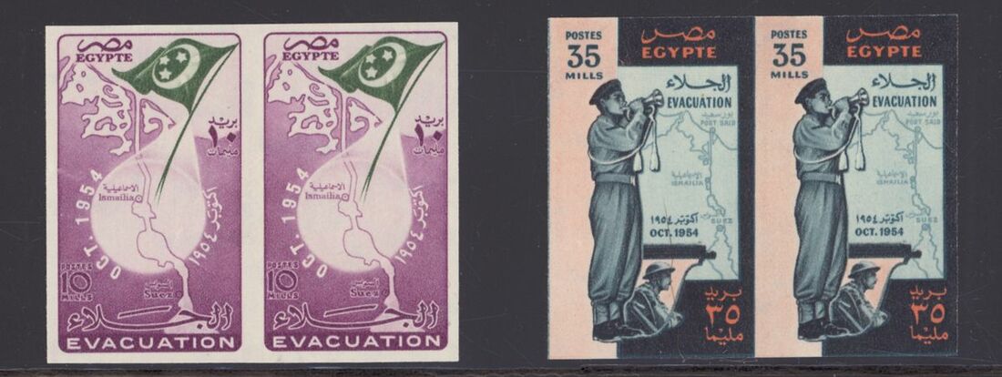 1959 British Troop Evacuation set of two in imperforate horizontal pair on gummed paper, unmounted. Fine and scarce. Nile Post C151a-C152a