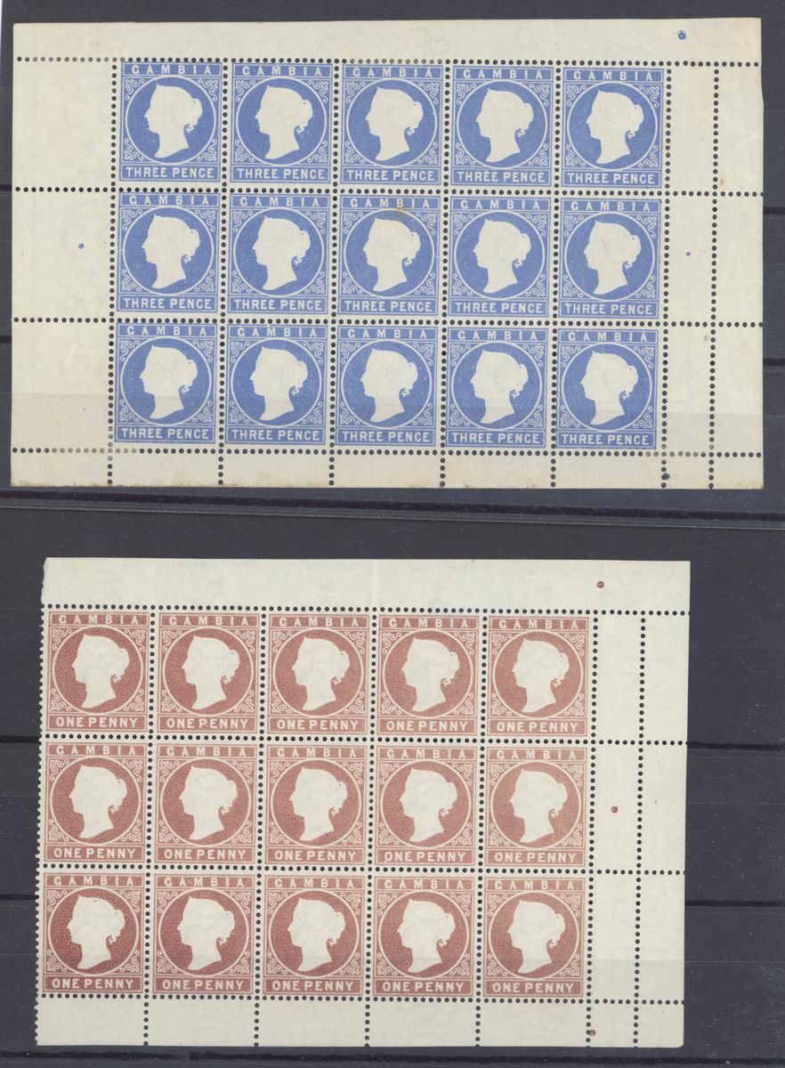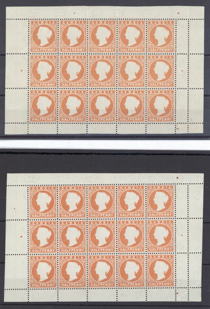 1880-93 mint group of complete sheets (15) comprising CC upwards ½d. orange (2), 1d. maroon (2) and 3d. CA sideways ½d. (complete sheet and block of twelve), 1d. (2), 2d., 3d., 4d. (2, and block of nine) and 6d. irregular block of eleven; generally fine mint. S.G. 108-32 group