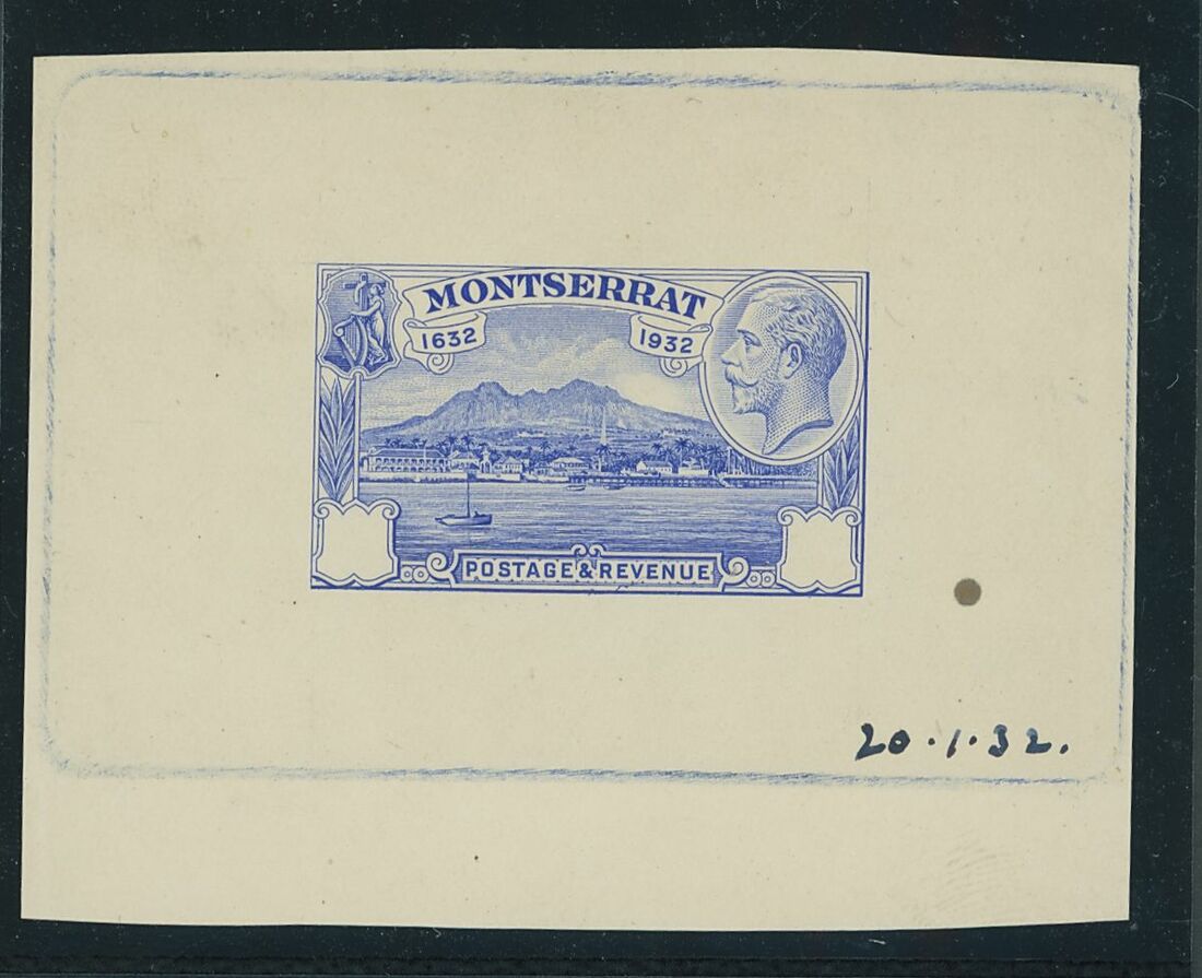 1932 Tercentenary unfinished master die proof in blue on white surfaced paper (74x60mm.) dated "20.1.32", fine. Photo