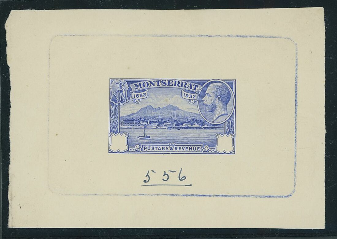 1932 Tercentenary completed master die proof in blue on white surfaced paper (93x64mm.) numbered "556", fine. Photo