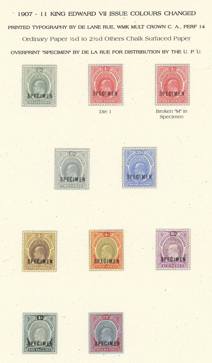 1903-12 Specimen collection, including 1903-04 to £1, 1904-09 3d. horizontal pair, 1907-11 to 2/6d. plus additional 1d. with variety broken '