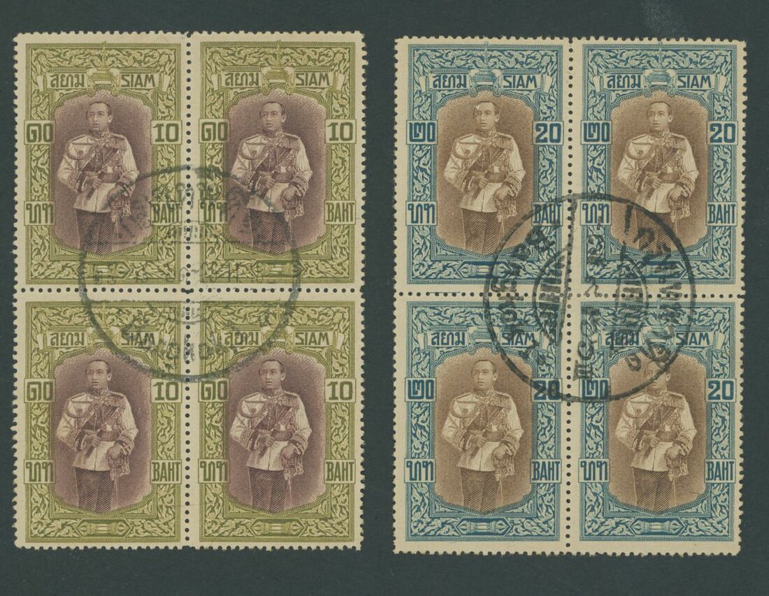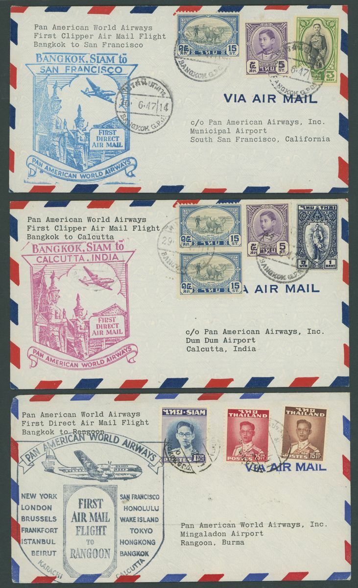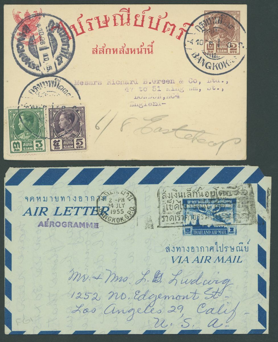 1929-55, selection of twenty-five covers and cards, mostly Air Mails, including 1939 Red Cross set on cover from the Norwegian Consulate in Bangkok to Burma, etc., also 1917 Waterlow 10b. and 20b. used blocks of four. Chiefly fine