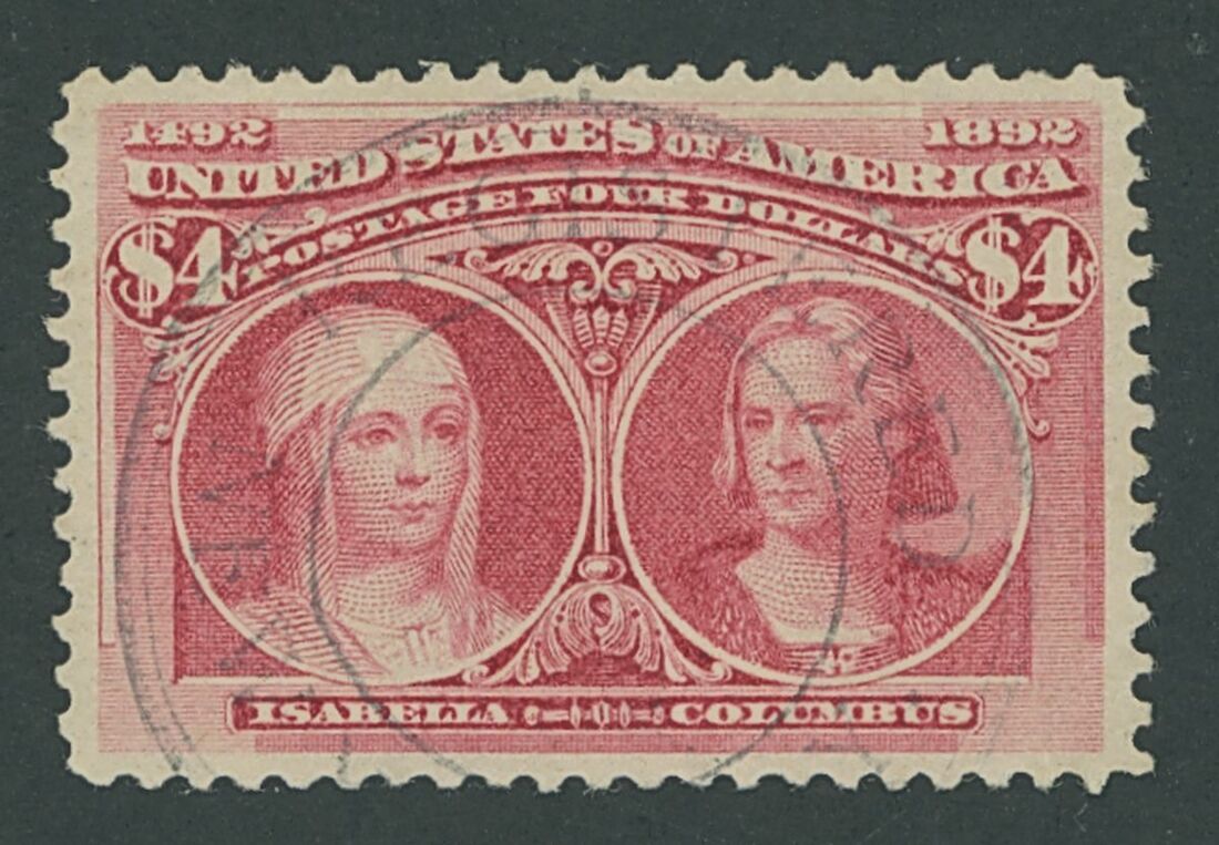 $4 crimson lake outstanding centering with wide and balanced margins, unusually lightly cancelled by New York double circle registered d.s. P.S.E. certificate (2009) (XF-Sup 95; SMQ $6,500.00). Only two graded higher (at 95J and 98). Scott 244
