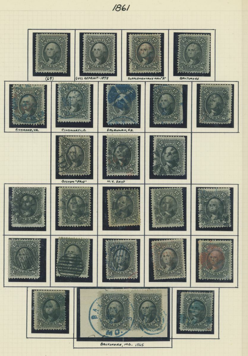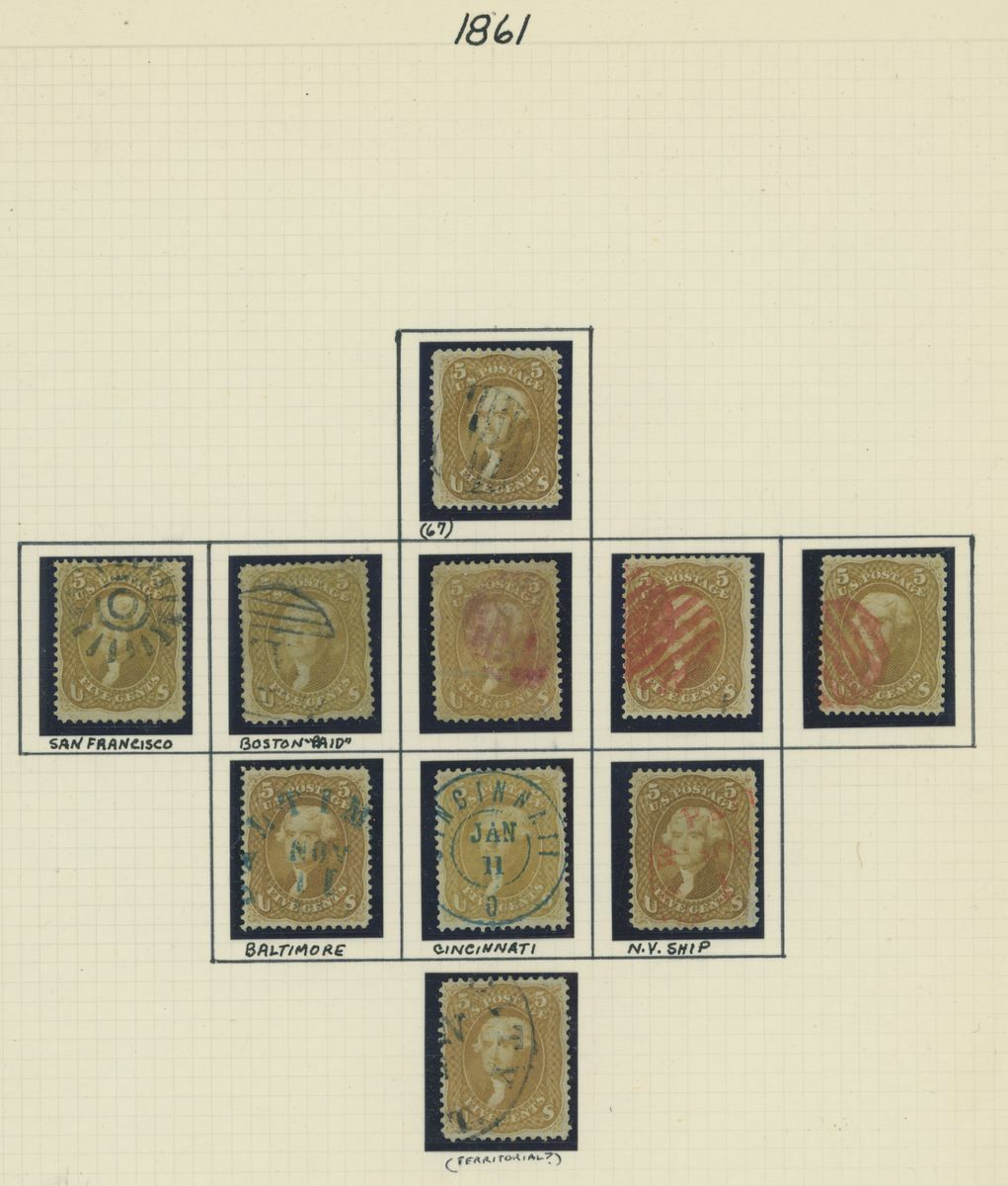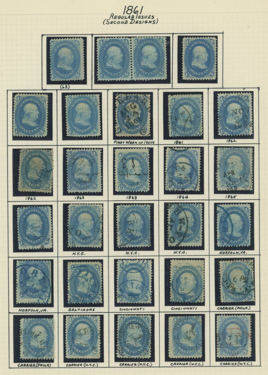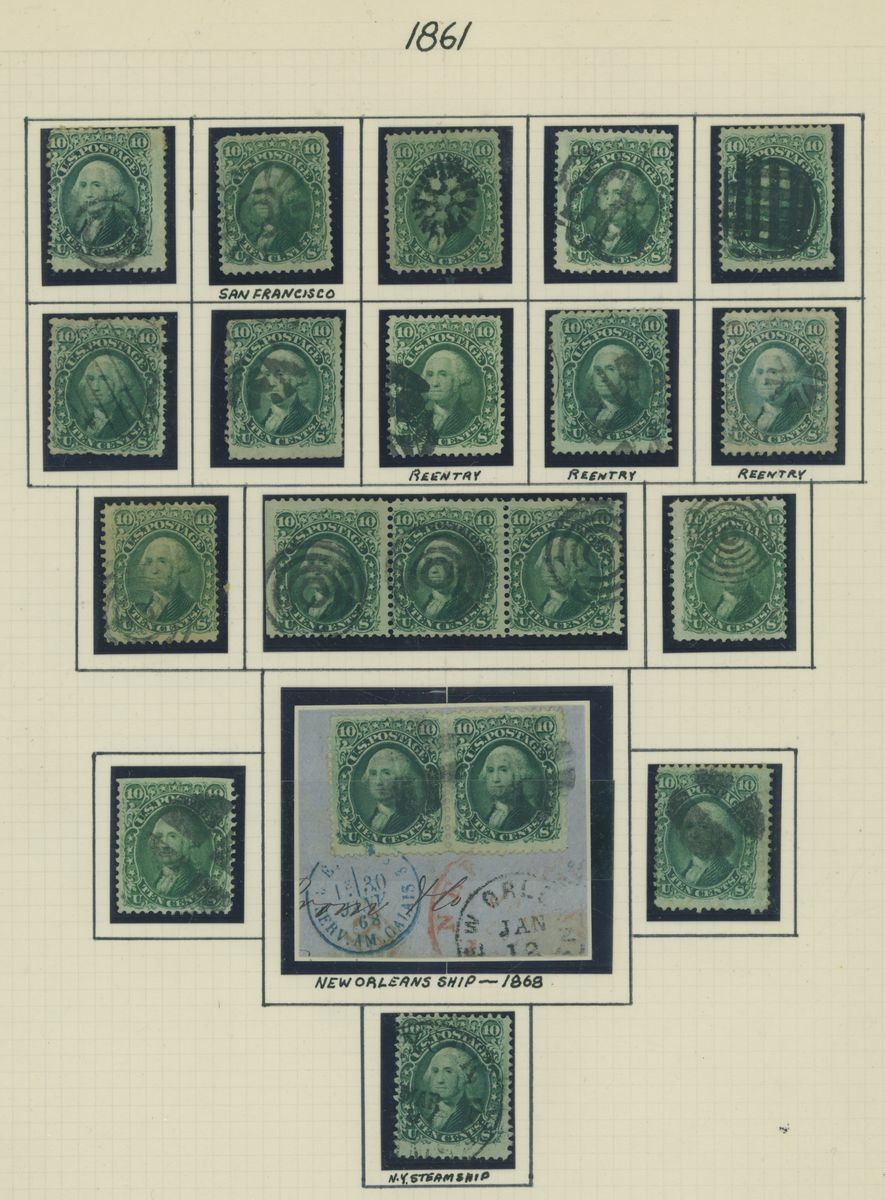 1861 issue duplicated mostly used collection neatly arranged on twelve written up pages including 1c. (94), 3c. (20), 5c. (10), 10c. (50), 12c. (26), 24c. (21), 30c. (26), 90c. (5), with some different types, shades and cancellations, the few of unused appearance with no gum, mixed condition though a great lot for the specialist of this issue.