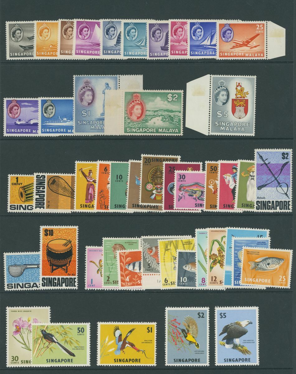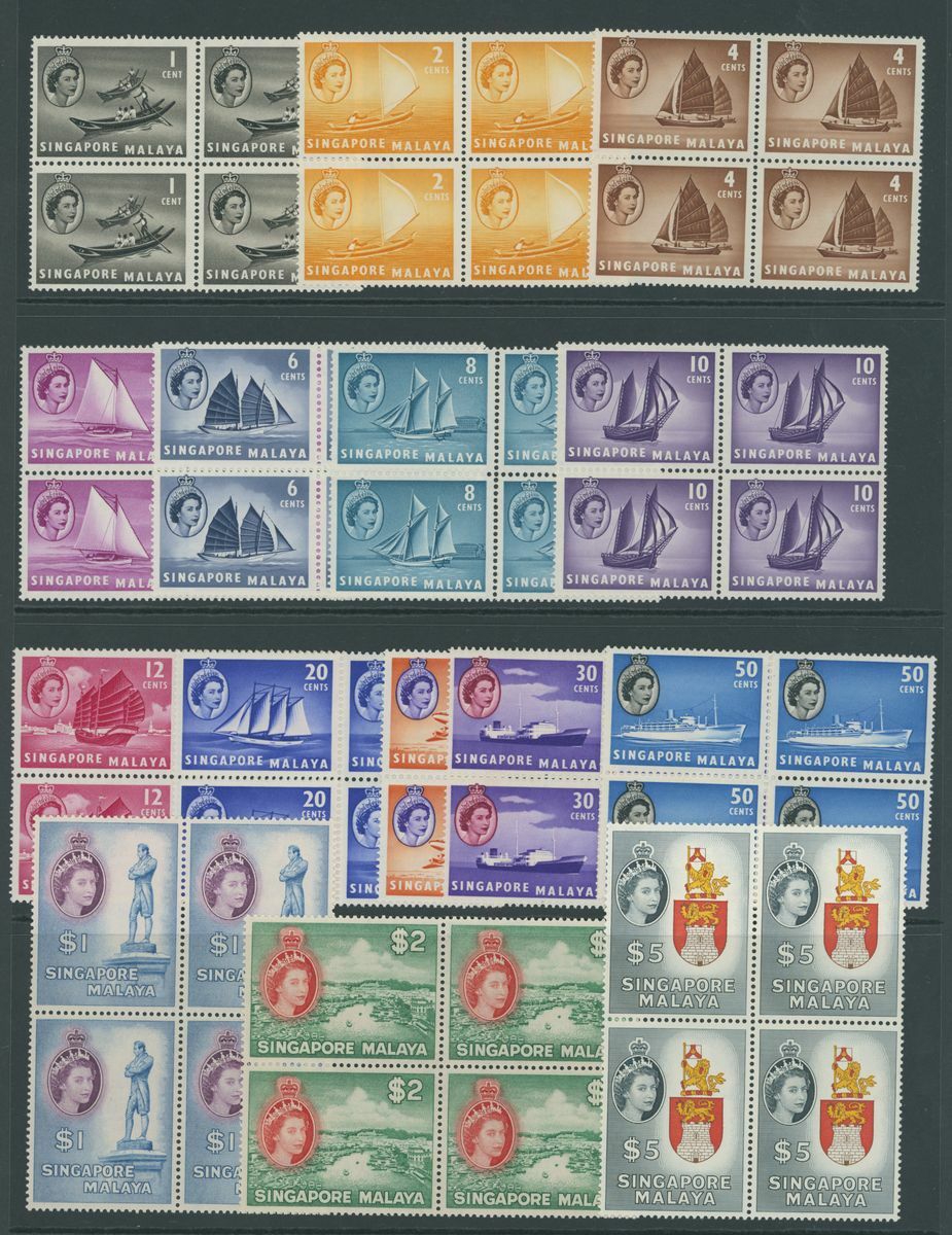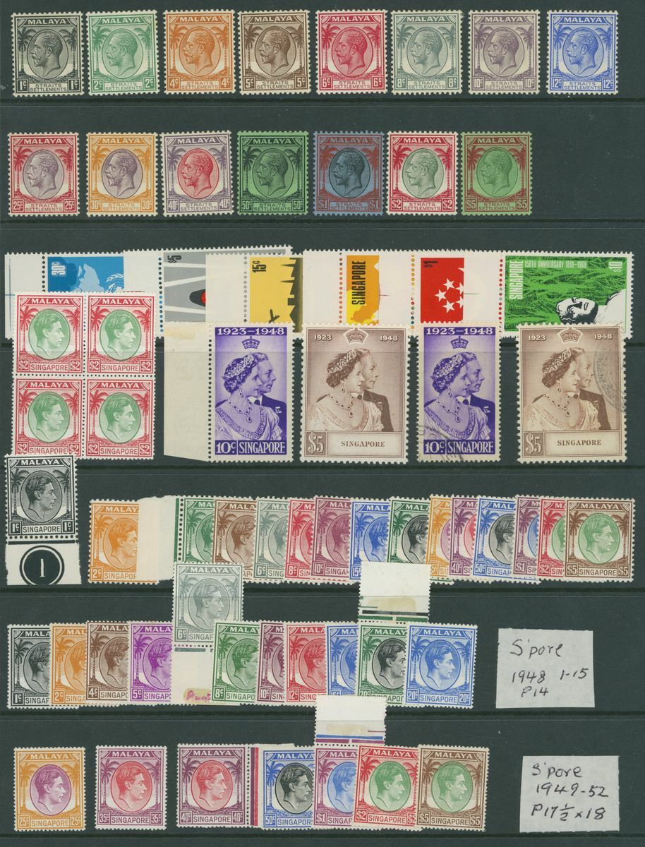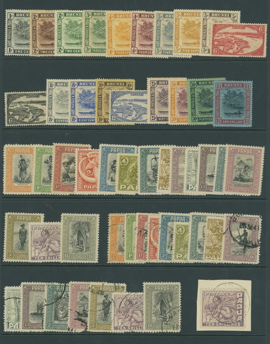 British Commonwealth South-East Asia collection on hagner pages (13), mostly mint and with complete sets including Brunei 1895 to $1, 1906 to $1 on 8c., 1907 to $1, 1924 set to $1, 1947 $5 and $10 blocks of four, Papua 1932-40 sets to £1 mint and used; Malaya Straits Settlements 1936-37 set to $5; BMA Malaya 1946 registered cover to Singapore bearing 25c., $1 and $5, Malaya Kelantan 1937 set to $5 mint, Singapore 1948 Perf 14 set to $5 in blocks of four and singles, Perf 17½x18 to $5, 1948 Silver Wedding sets mint and used, 1955 set to $5 in blocks of four and singles, 1962 set to $5 in blocks of four and singles, 1968-73 set of fifteen to $10, North Borneo 1916 optd type b set to 25c. unused and 25c. on cover to Sandakan, 1931 sets to £5 mint and used, 1939 set to $5, BMA 1945 to £5 mint, also $5 block of four used, BMA 1947 to $5 in blocks of four mint, also full sets mint and used, 1950 to $10 mint and used, 1956 set in marginal blocks of four showing sheet number, 1939 postage due to 10c. in marginal blocks of four; Sarawak BMA 1945 set to $10 mint and used set to $10 tied to pieces (4), generally fine and with many unmounted examples, a useful collection with high catalogue value (S.G. £13,000+)