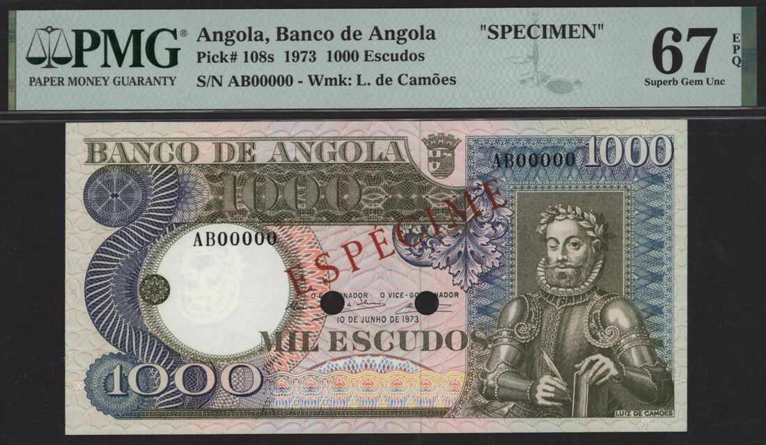 [Top Pop] specimen 1000 Escudos, 10th June 1973, serial number AB00000,