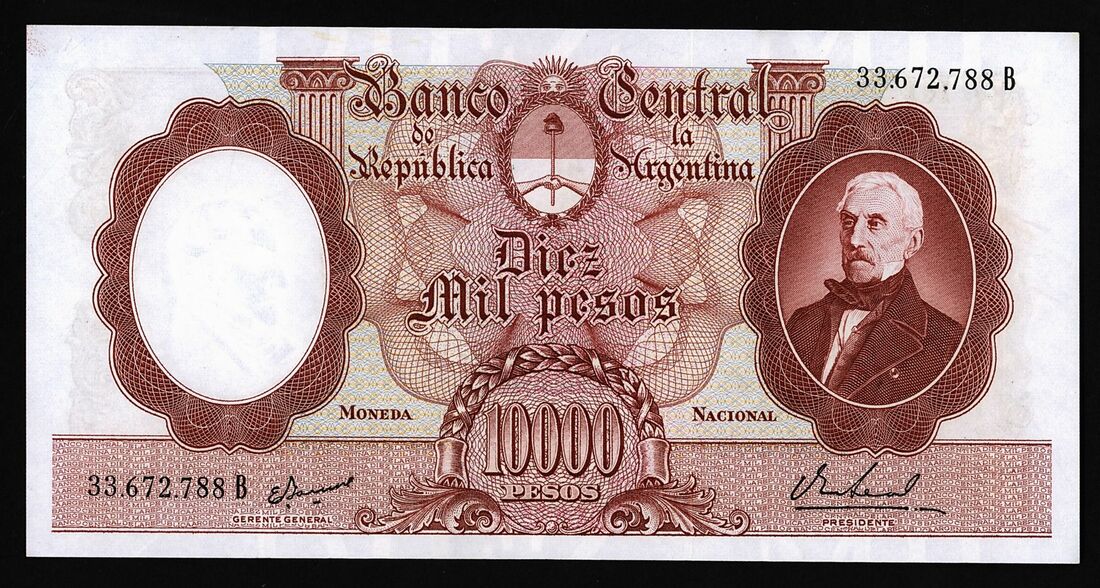 (x) Banco Central, Republica Argentina, 10000 Pesos, ND (1967), serial number 33.672.788B, (Pick 281b, BNB 334e), about uncirculated, handling creases