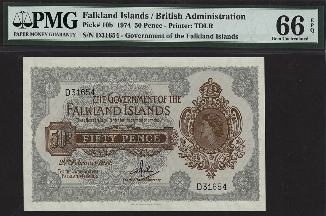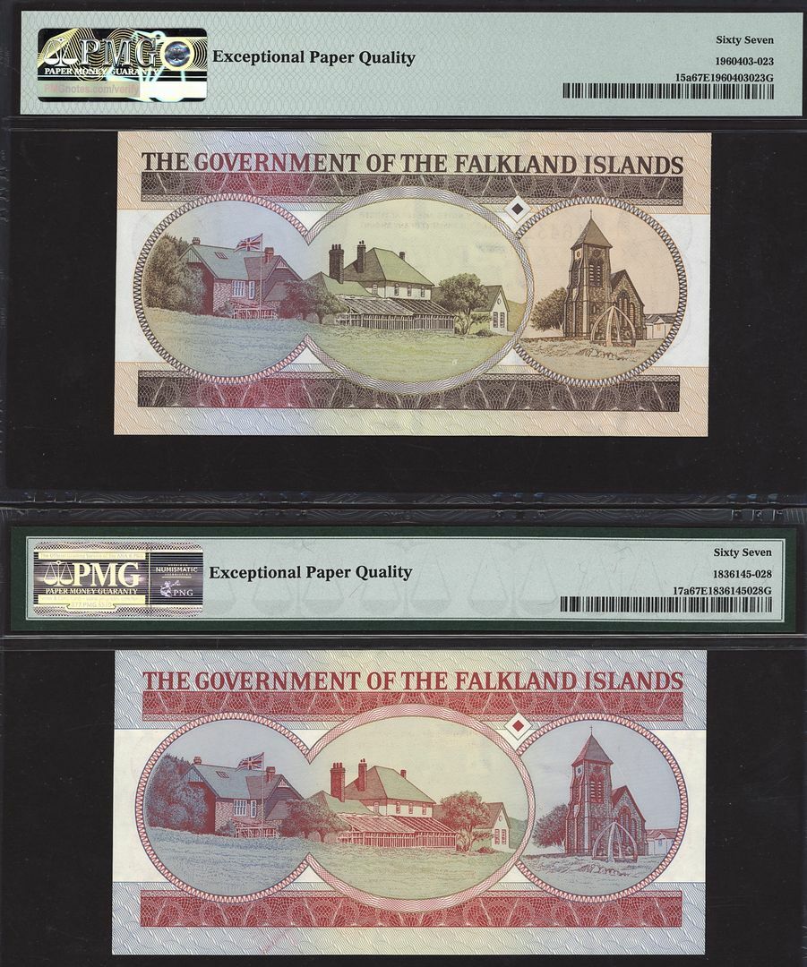 (x) Government of the Falkland Islands, [5 notes] 50 Pence, £5, £10, £20, 1974-2005,