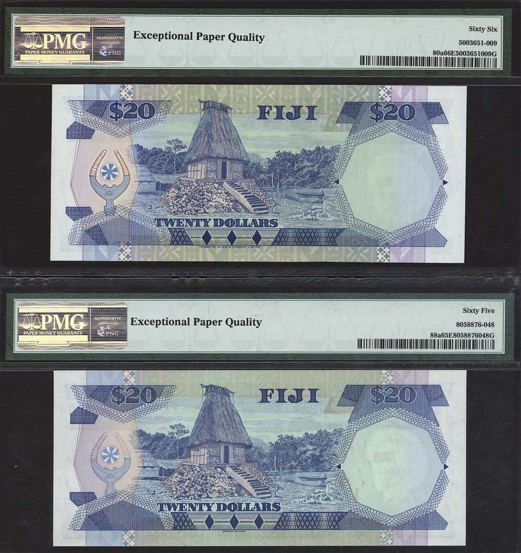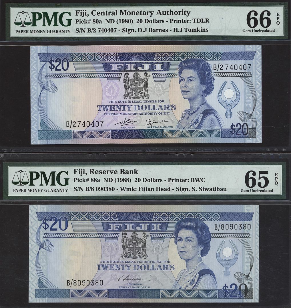 (Pick 80a, 88a, BNB 411, 505), in PMG holders 65 EPQ Gem Uncirculated and 66 EPQ Gem Uncirculated (2 notes)