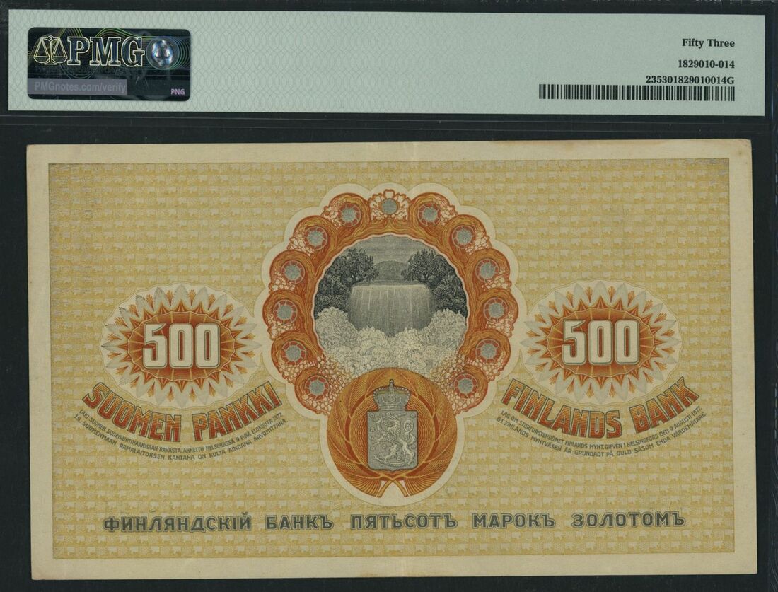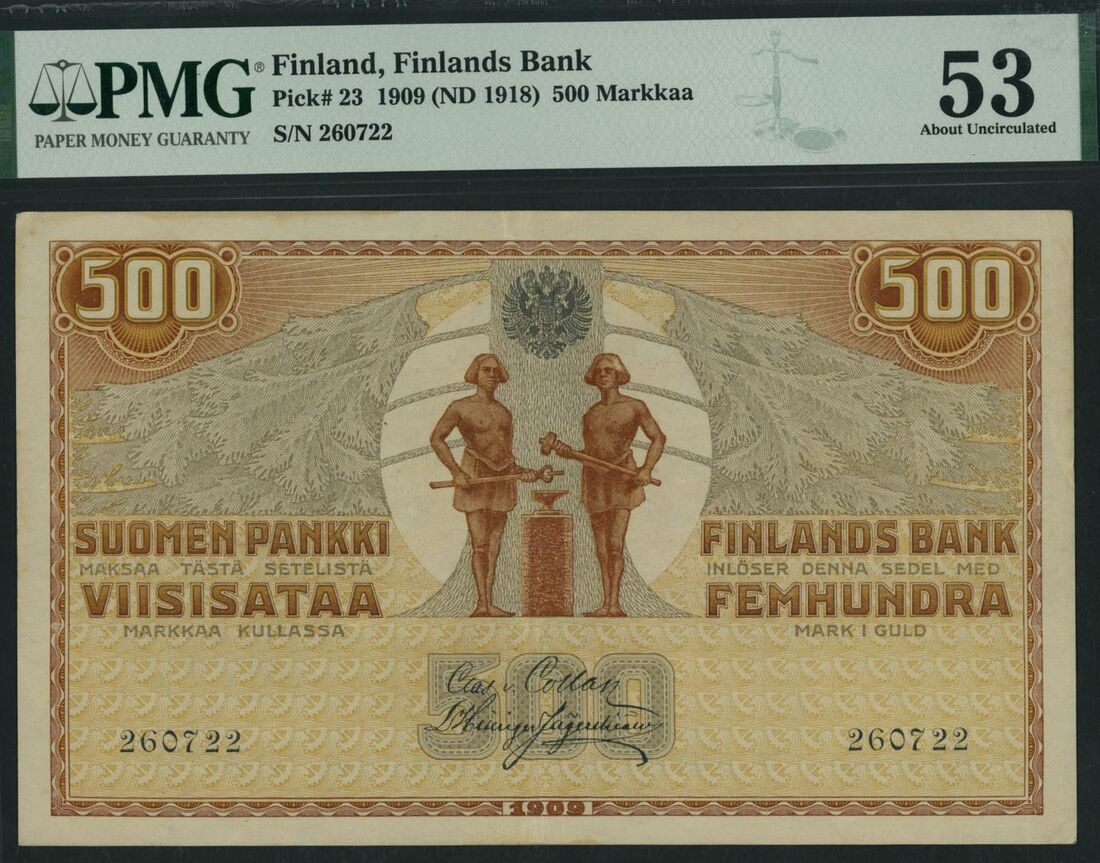 (x) Finlands Bank, Finland, 500 Markkaa, 1909 (ND 1918), serial number 260722, (Pick 23), in PMG holders 53 About Uncirculated