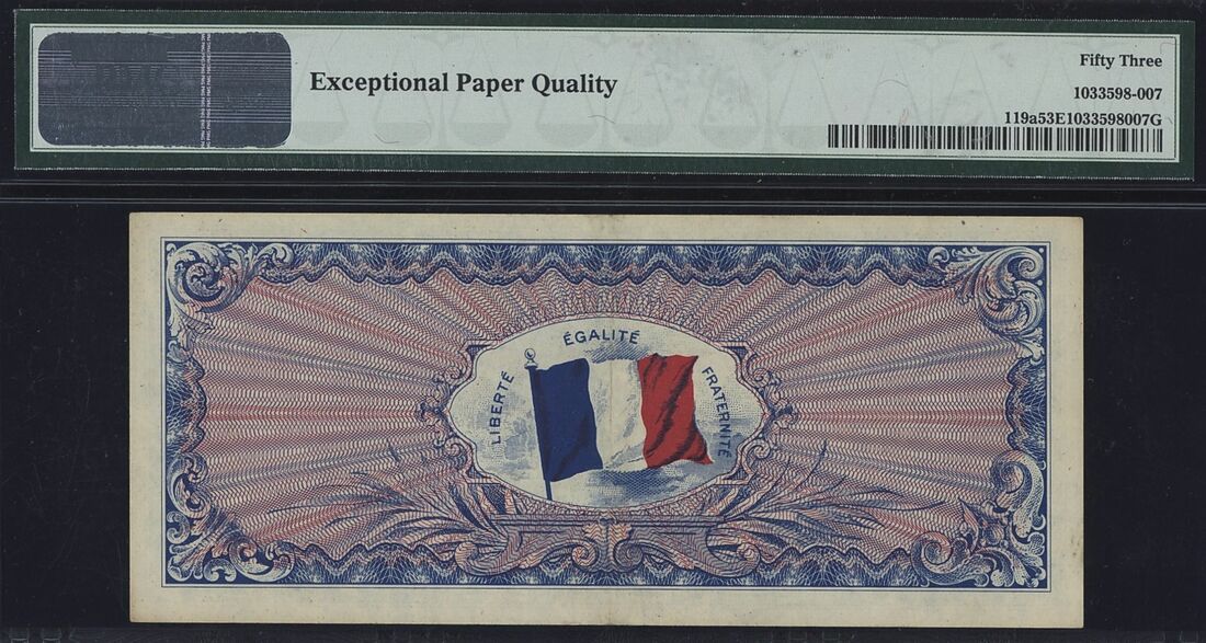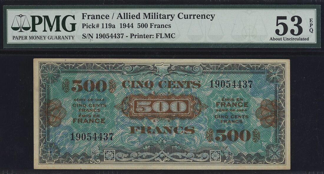 (x) France / Allied Military Currency, 500 Francs, 1944, serial number 19054437, (Pick 119a, BNB 1306, SB147), in PMG holder 53 EPQ About Uncirculated
