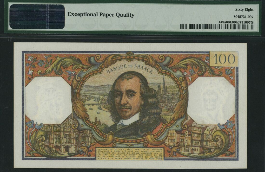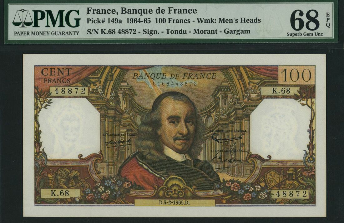 (x) Banque de France, [Top Pop] 100 Francs, 4th February 1965, serial number K.68 48872, (Pick 149a), in PMG holder 68 EPQ Superb Gem Uncirculated, single finest graded on PMG census