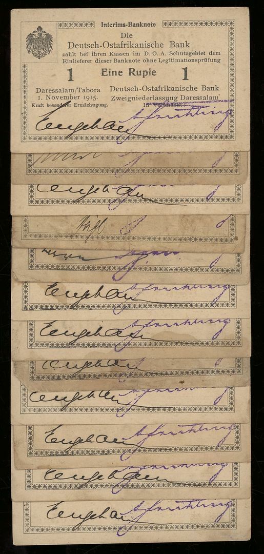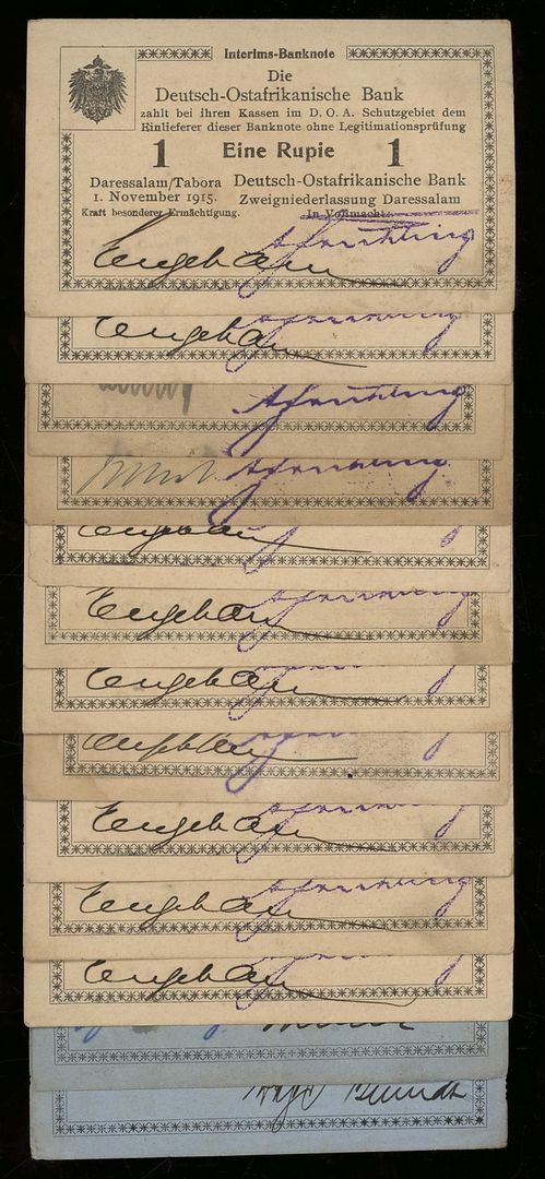 Deutsch-Ostafrikanische Bank, German East Africa, [25 notes] 1 Rupie, 1st September 1915, 1st November 1915,