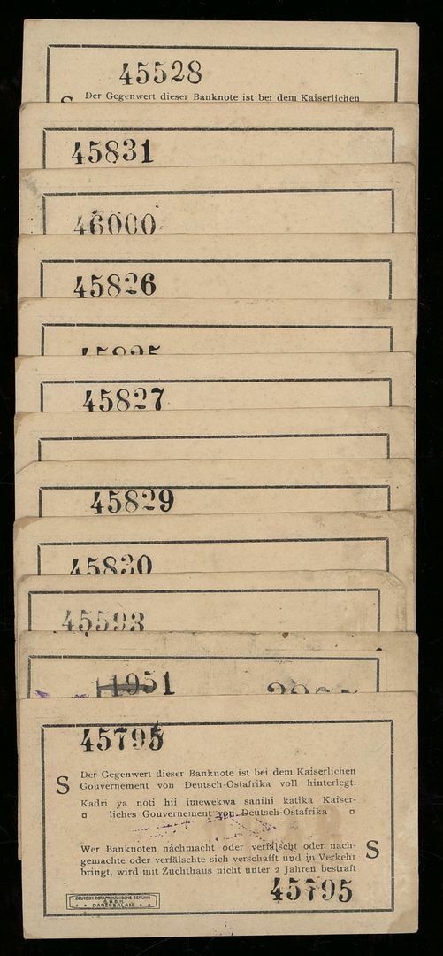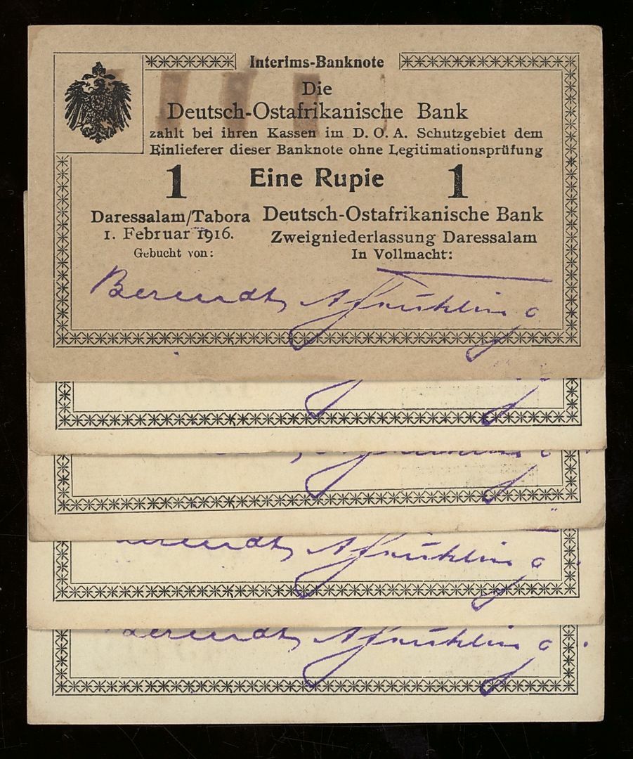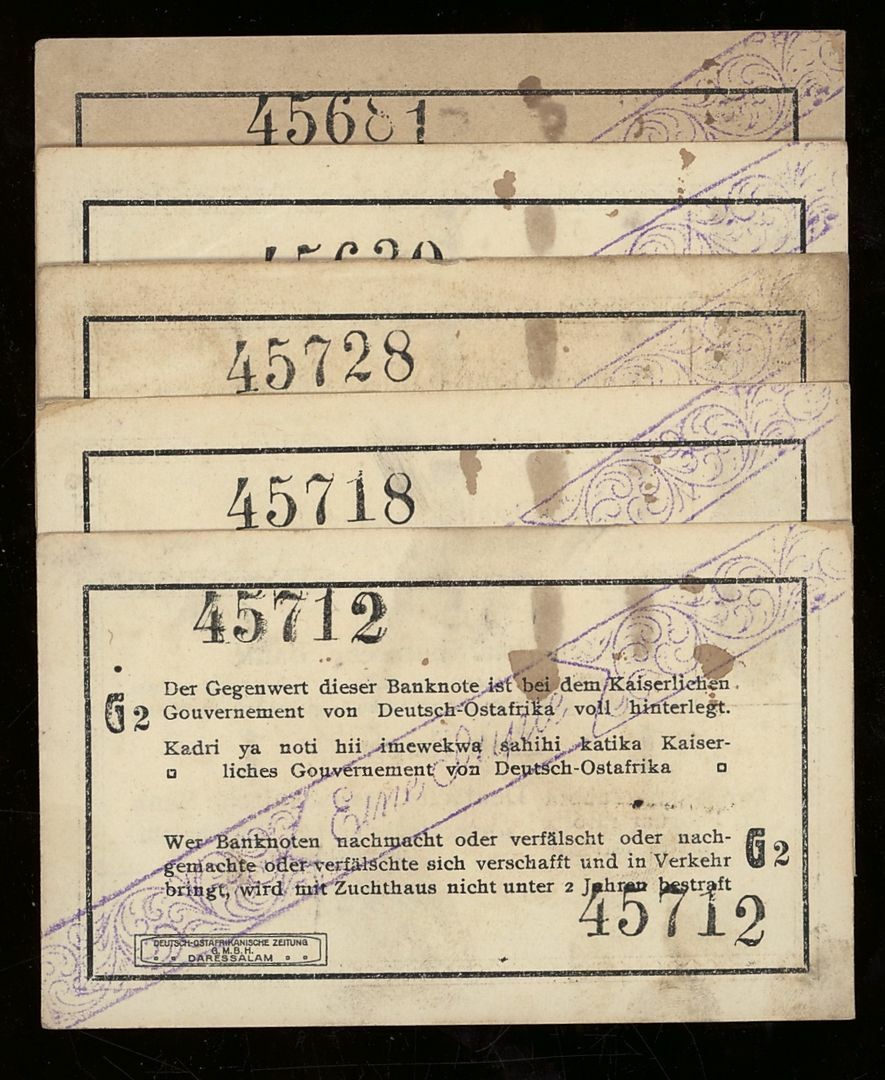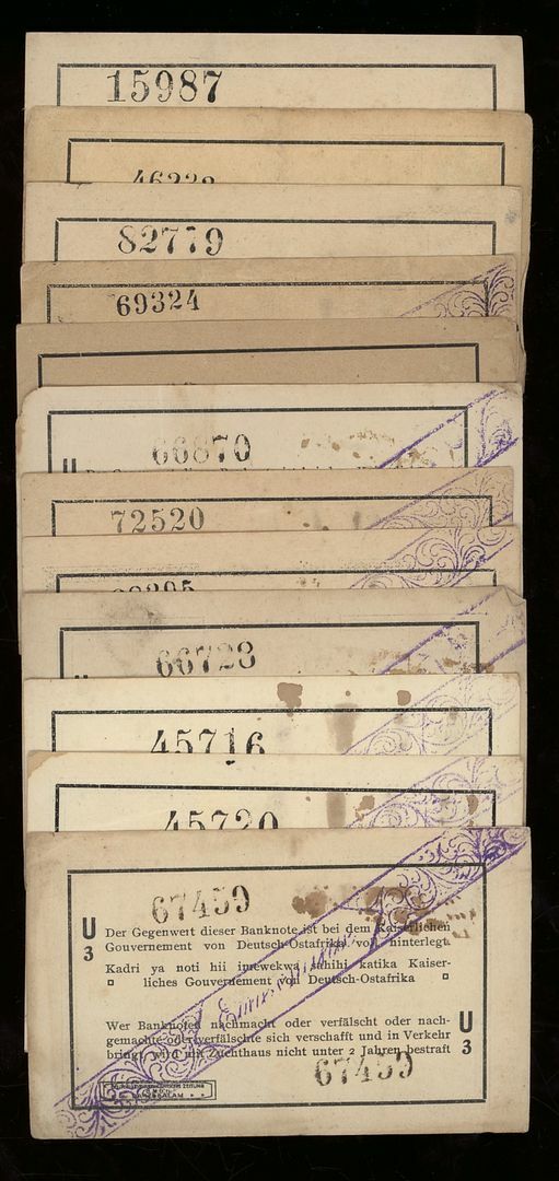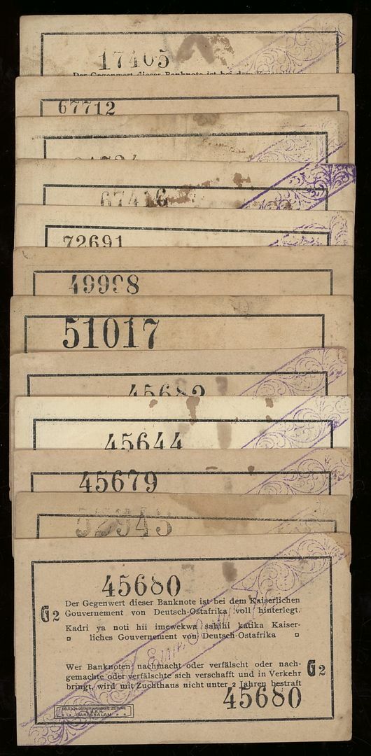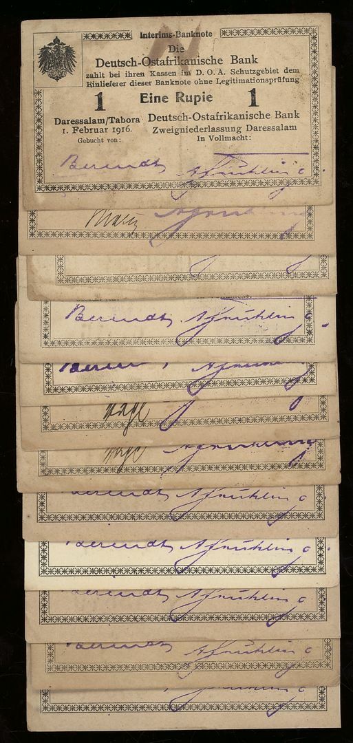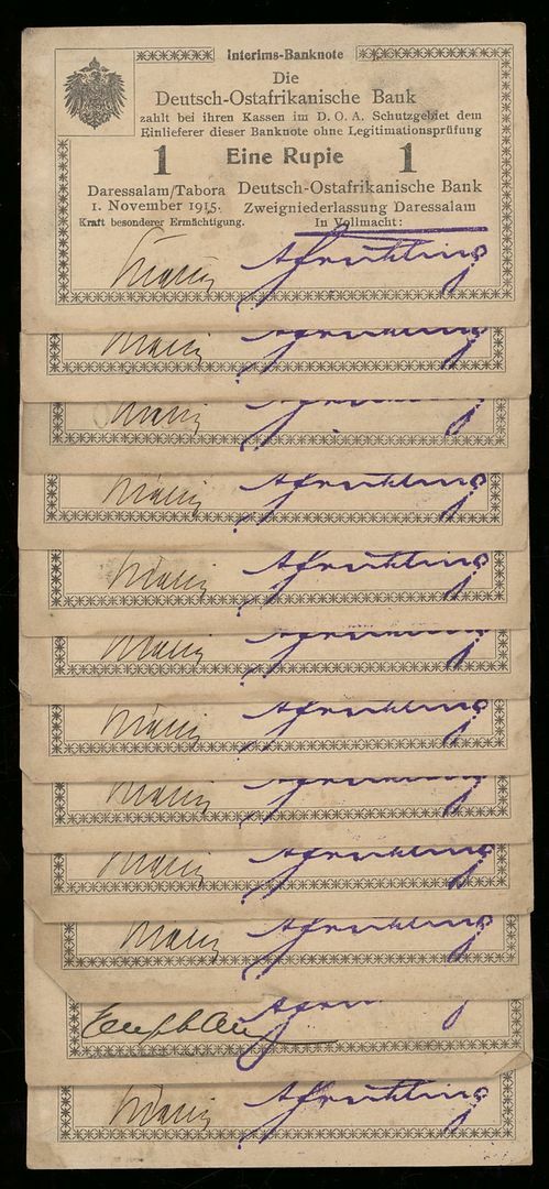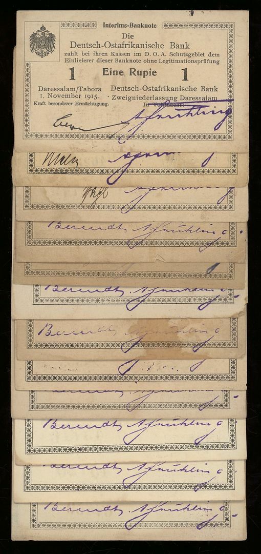 Deutsch-Ostafrikanische Bank, German East Africa, [39 notes] 1 Rupie, 1st November 1915, 1st February 1916, (Pick 9A, 19, 20), fine to about very fine, many with stains, smudges (39 notes)