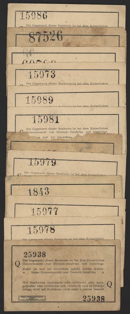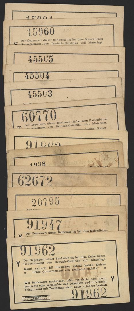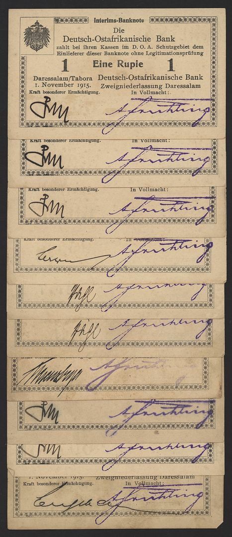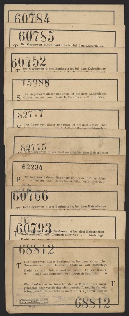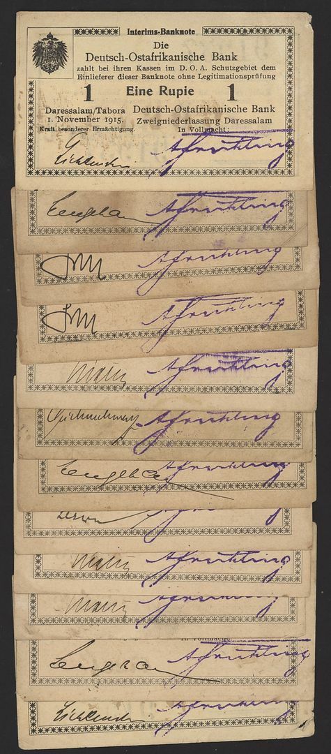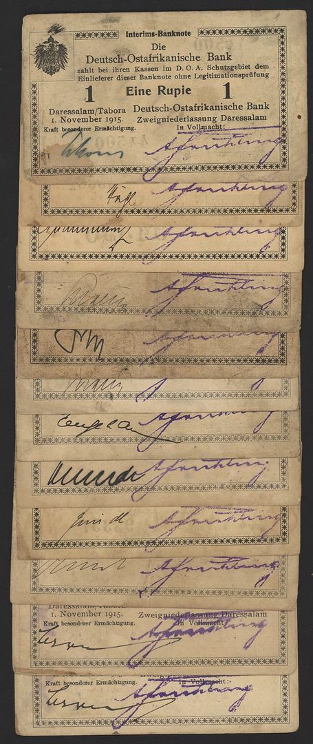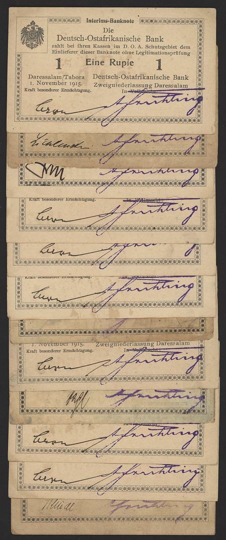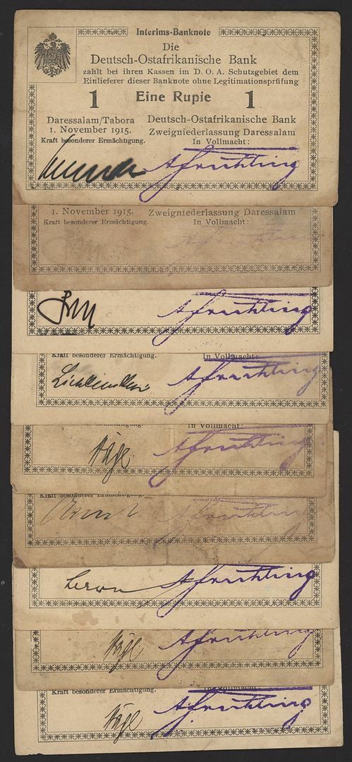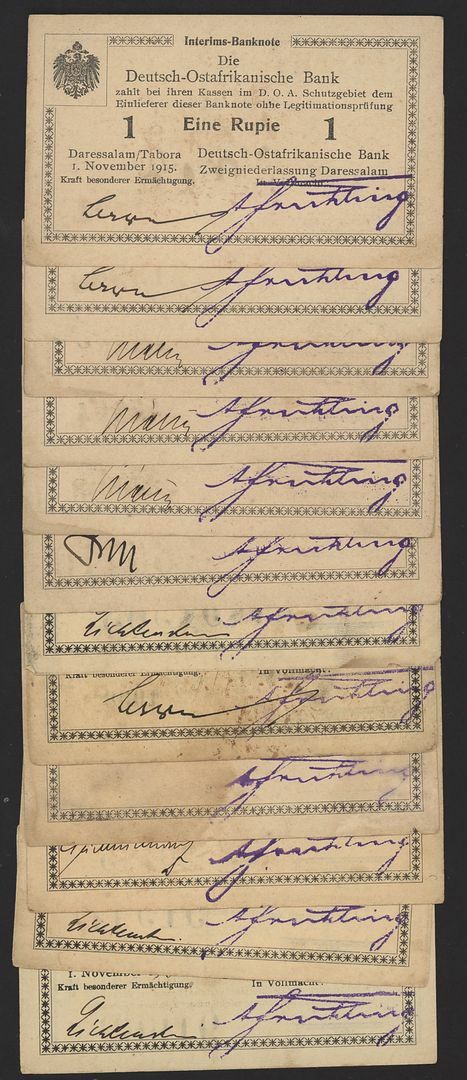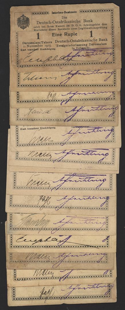 Deutsch-Ostafrikanische Bank, German East Africa, [82 notes] 1 Rupie, 1st November 1915, (Pick 9Ab), good, paper loss to about extremely fine (82 notes)