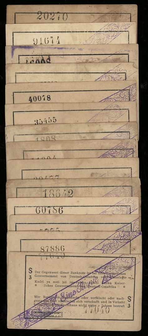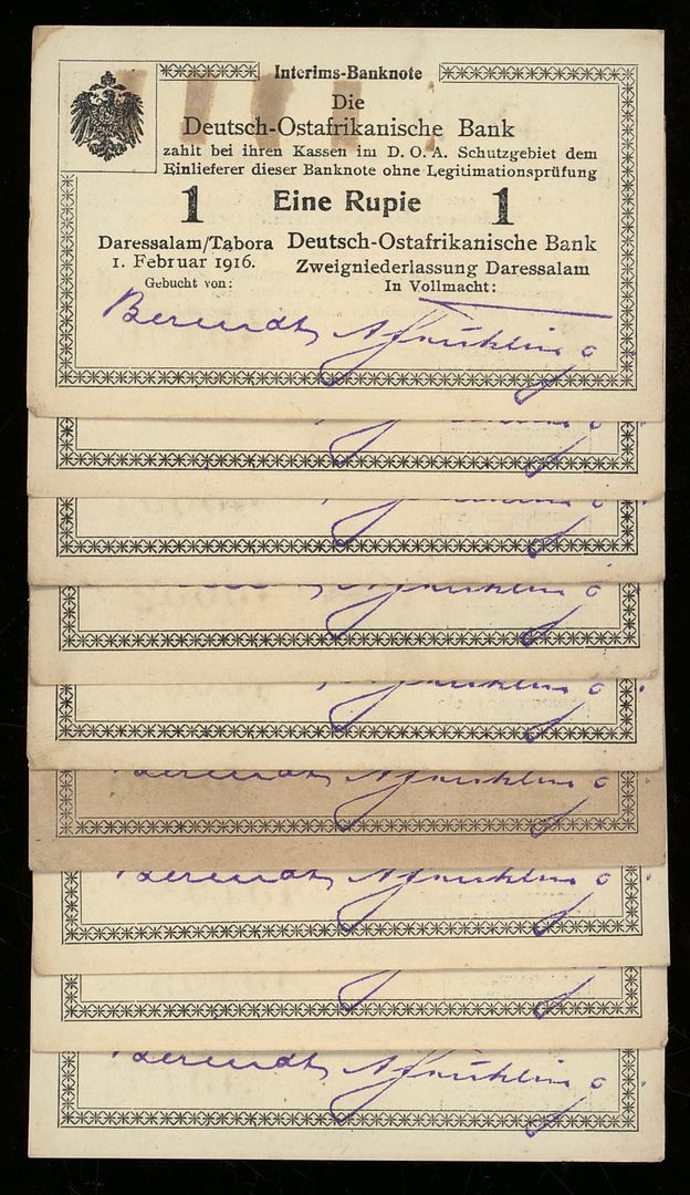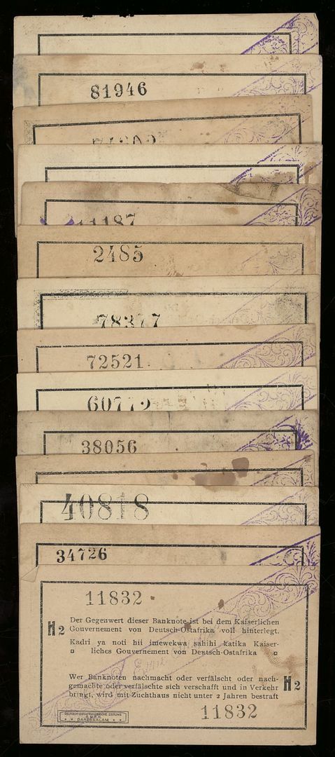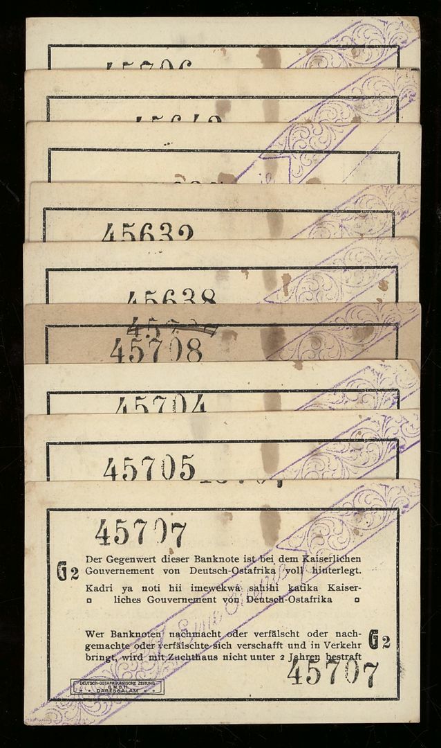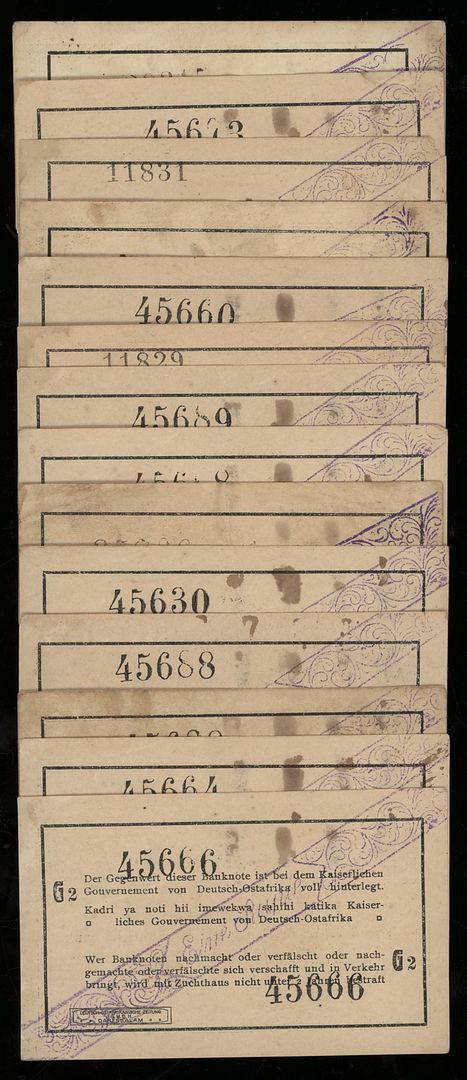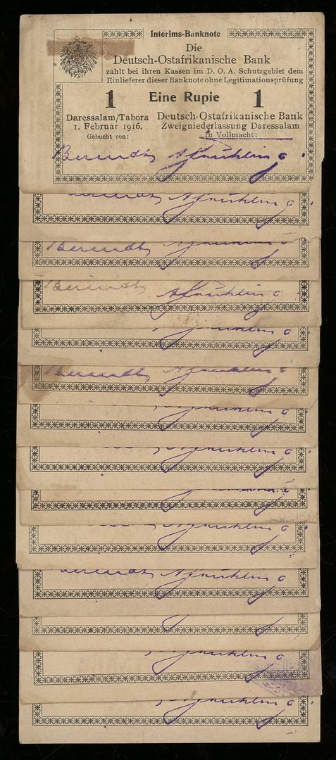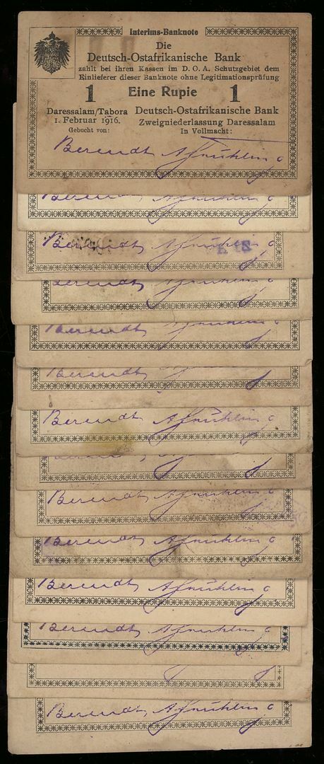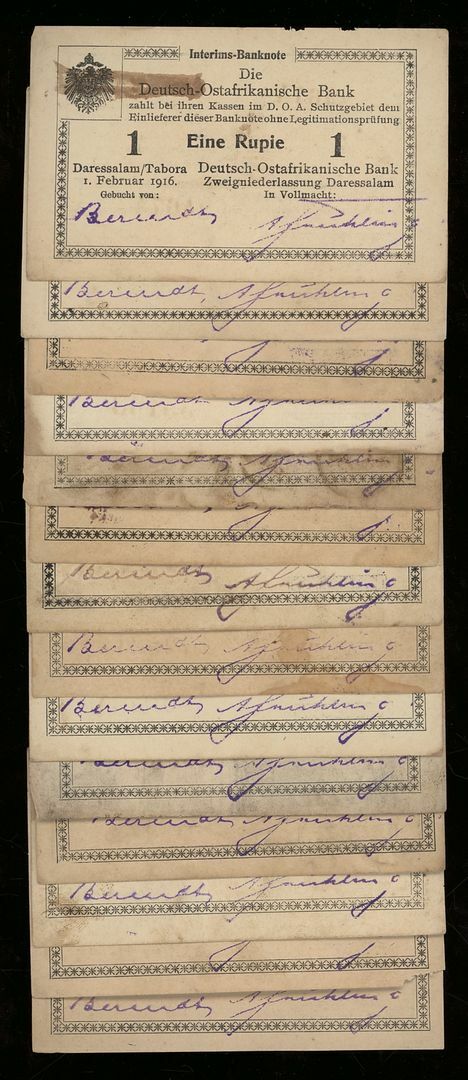 Deutsch-Ostafrikanische Bank, German East Africa, [51 notes] 1 Rupie, 1st February 1916, (Pick 19, 20), fine to very fine, many with stains, smudges (51 notes)