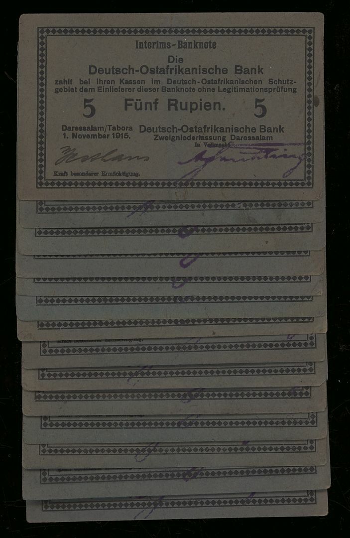 Deutsch-Ostafrikanische Bank, German East Africa, [31 notes] 5 Rupien, 1st November 1915, without jute texture