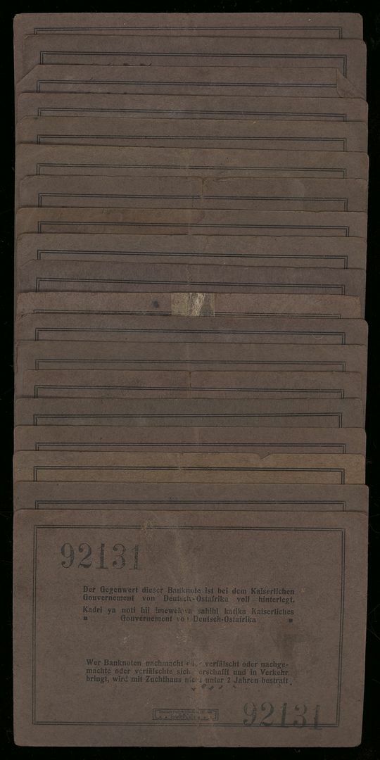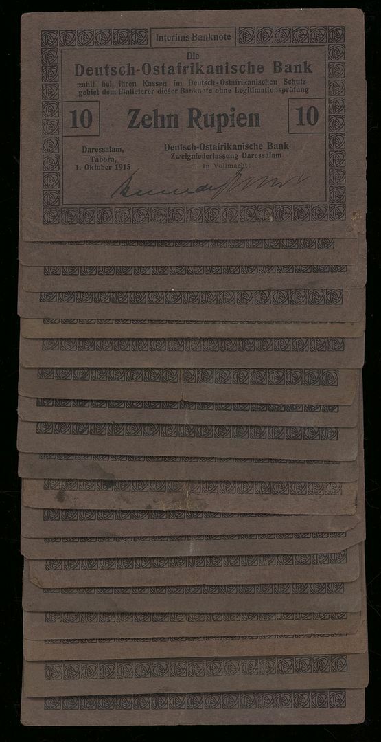 Deutsch-Ostafrikanische Bank, German East Africa, [30 notes] 10 Rupien, 1st October 1915, (Pick 38a), good, paper loss, tape repairs, to very fine (30 notes)