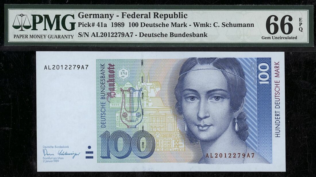 Deutsche Bundesbank, Germany - Federal Republic, 100 Deutsche Mark, Frankfurt, 2nd January 1989, serial number AL2012279A7, (Pick 41a), in PMG holder 66 EPQ Gem Uncirculated